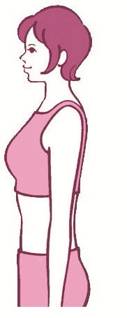 下腹ぽっこりを解消する運動としておすすめなのが、下腹ドローイン。通勤中やデスクワーク時、台所仕事中でもできるので、習慣化しやすい動作です。基本は立って行いますが、いすに座った姿勢でもできます。