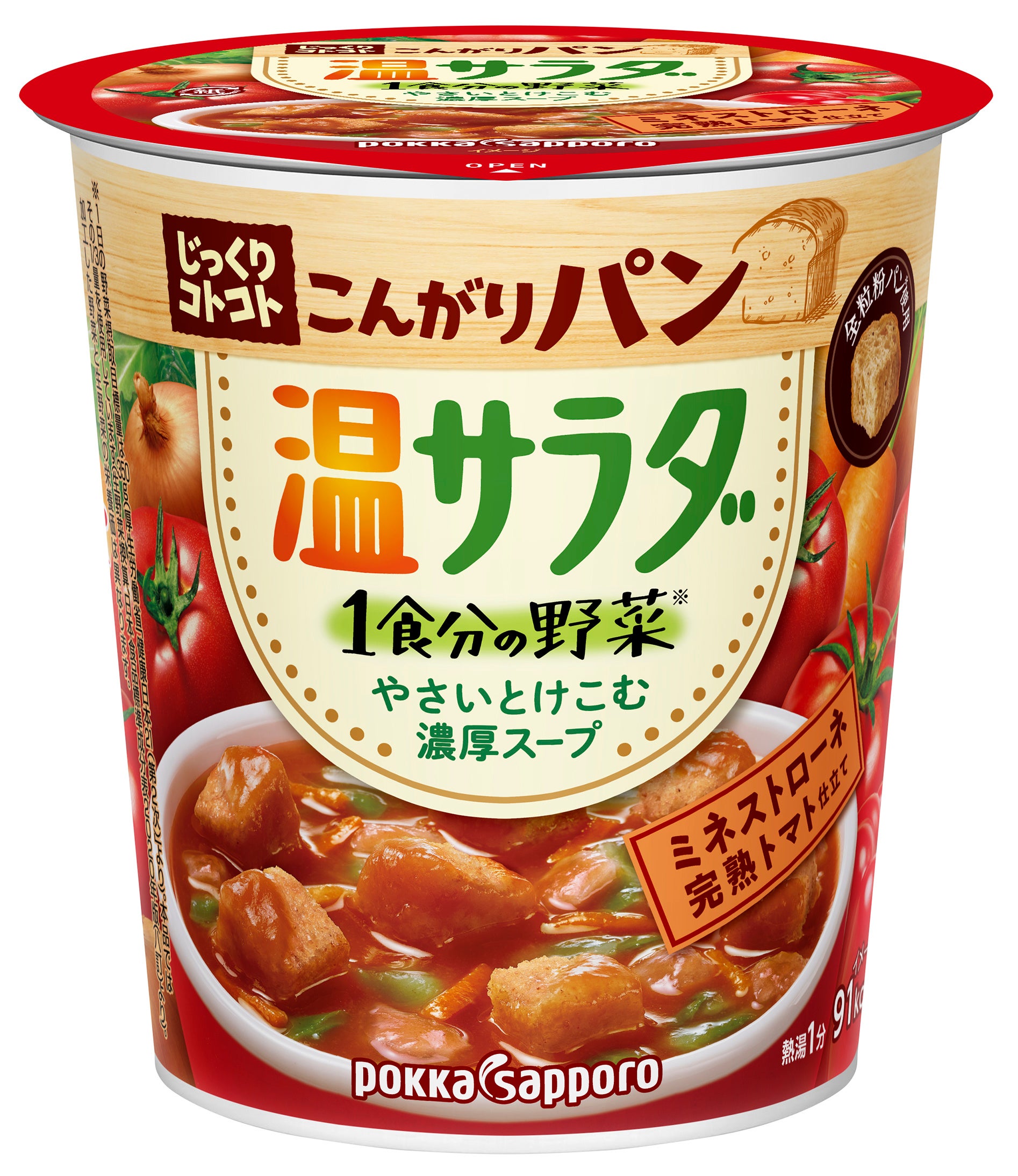 サッポロホールディングス(株)のグループ企業である、ポッカサッポロフード&ビバレッジ株式会社(代表取締役社長:征矢真一、本社:愛知県名古屋市)は、じっくりコトコトより、170gリシール缶の新シリーズ「やさいのじっくりコトコト」“コーンポタージュ”“トマトとたまねぎのスープ”“じゃがいものスープ”“栗かぼちゃのポタージュ”、カップ入りの新シリーズ 「じっくりコトコトこんがりパン温サラダ」“ほうれん草チャウダー”“ミネストローネ”“オニオンチャウダー”を、2022年2月21日(月)より全国で新発売します。