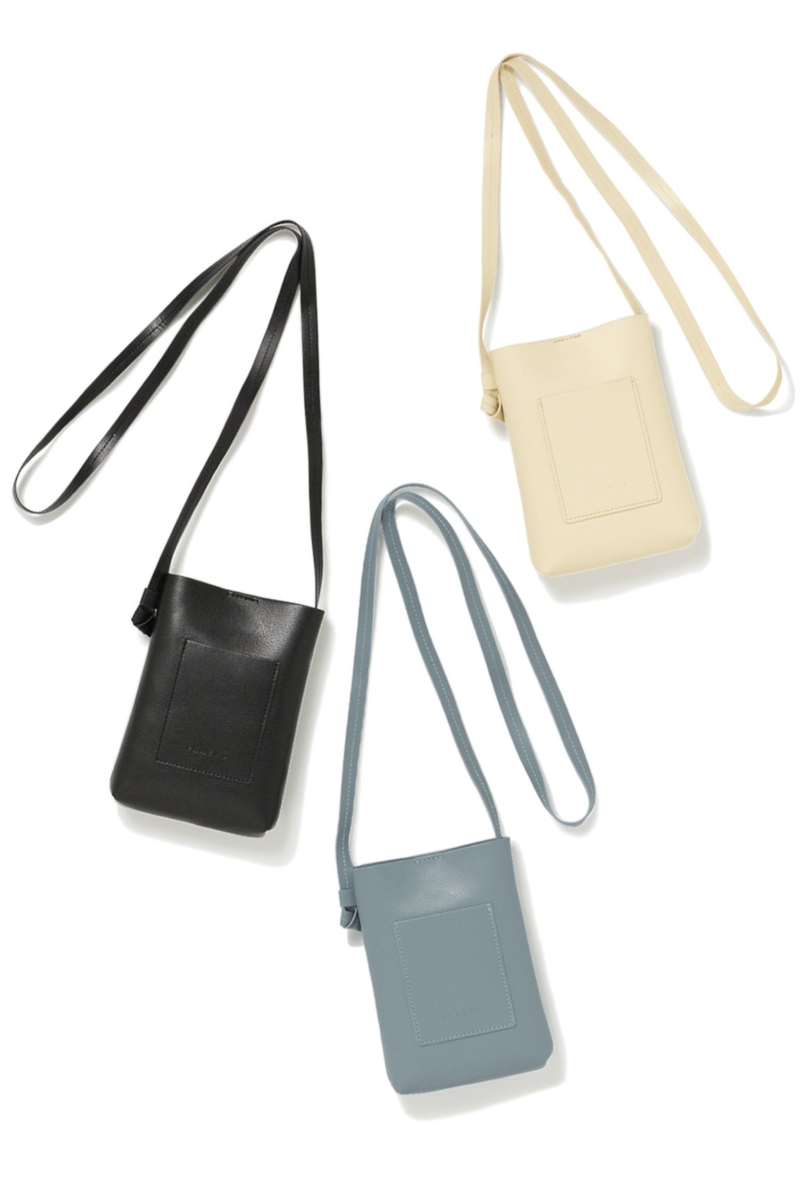 アクセサリー感覚で気軽に使えるサコッシュは、アイスブルー・ベージュ・ブラックの3色展開です。