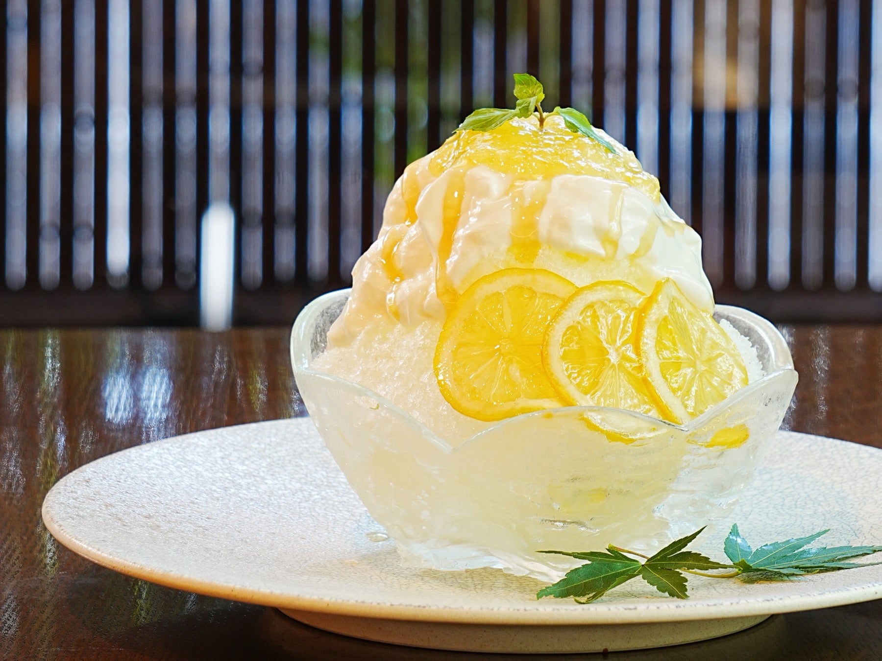 檸檬の香りと甘酸っぱさを感じる自家製シロップに、ほろ苦い檸檬ジュレをかけた真夏にぴったりのすっきりとした味わいです。