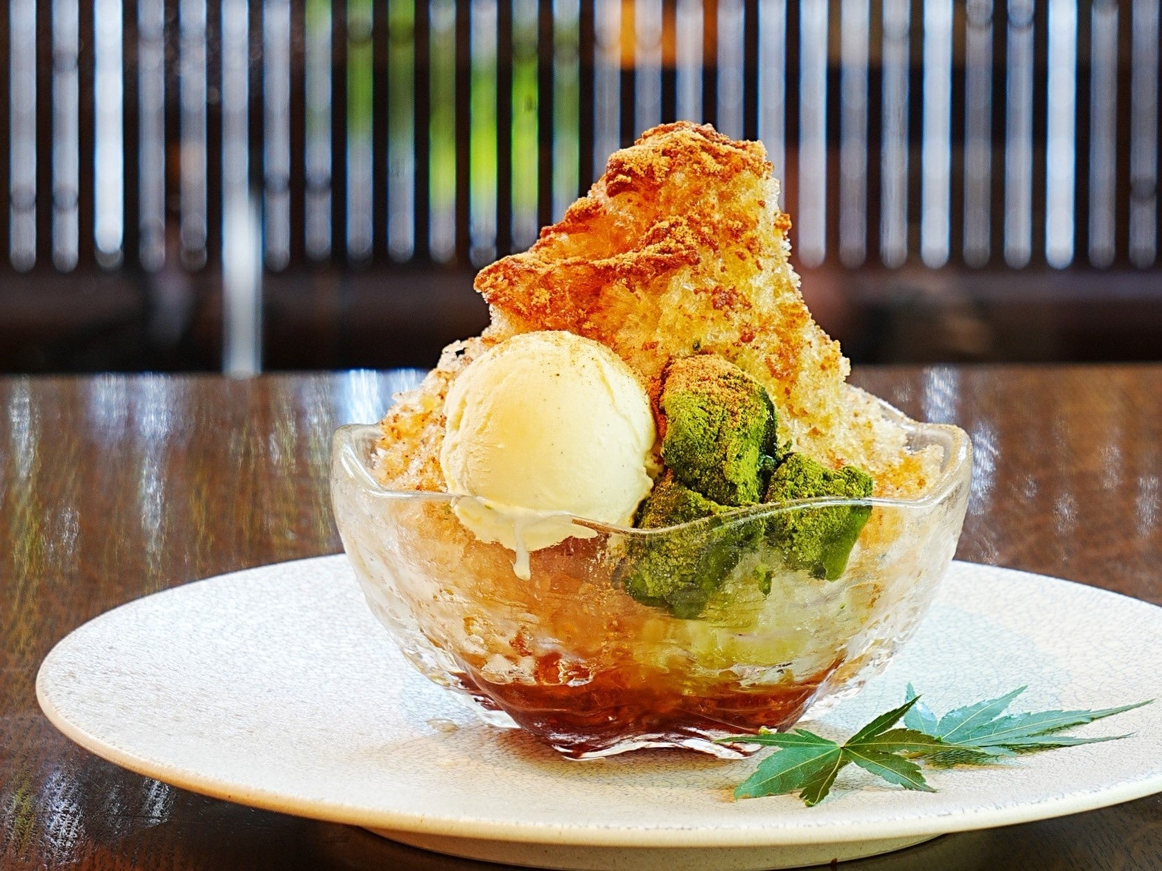 お好みで抹茶シロップをかけてお召し上がりください。