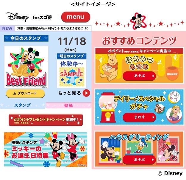 Disneyの壁紙とスタンプが取り放題!『Disney forスゴ得』 NTTドコモ「スゴ得コンテンツ®」向けサービス提供開始