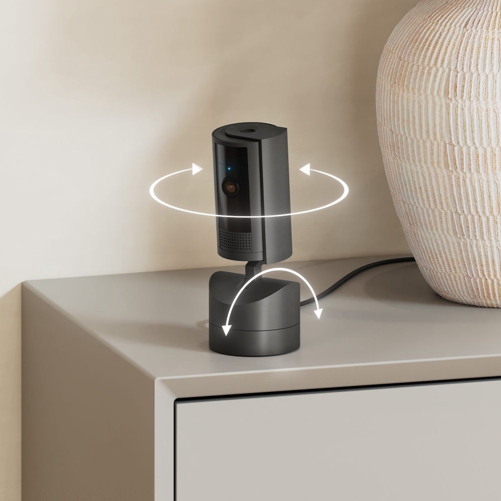 Ring首振り機能付きインドアカムは、スマートフォンのRingアプリ上からカメラの電動マウント部分を操作することで、カメラを左右360°に回転させたり上下169°に傾けたりして、店舗や小規模オフィス、自宅の気になるところを確認できるセキュリティカメラです。HDビデオとカラーナイトビジョン機能を搭載しているため、ライブ映像も鮮明にご確認いただけます※1。1つのカメラで同一部屋の近接する複数の出入り口やバックヤード、レジ周りなどを見守る必要がある店舗や小規模オフィスのオーナーの方から、留守中のペットや自宅の様子を見守りたい個人のお客様まで、防犯カメラや見守りカメラとして、幅広い用途に応じ便利にご利用いただけます※2。