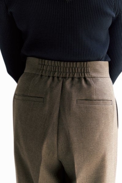 ▼後ろウエストのゴムが腰まわりの圧迫感を軽減し、歩きやすさも抜群。