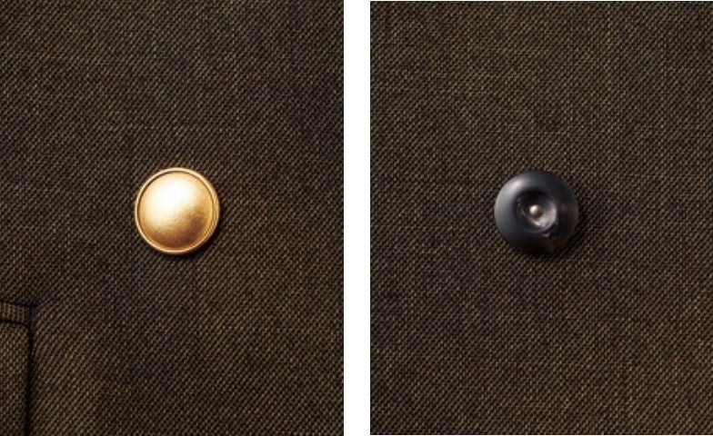 ▼シーンに合わせて、華やかなメタル風ボタンとクラシックなダークトーンのボタンを付け替え可能。
