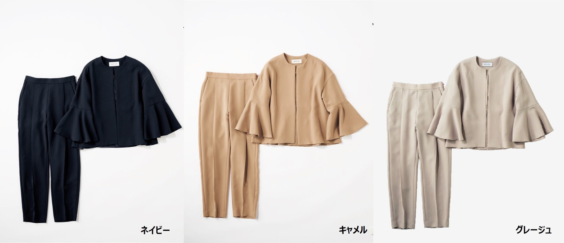 ワンピース 各1万9690円/ジャケット 各2万900円/パンツ 各1万3090円(税込)