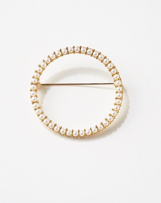 ▼ジャケットには、こなれ感と華やかさをプラスするブローチ付き。