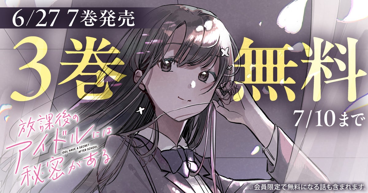ヤングアニマルWebで『放課後のアイドルには秘密がある』7巻発売記念キャンペーン!!3巻無料キャンペーン実施!! ※会員限定で無料になる話も含まれます。