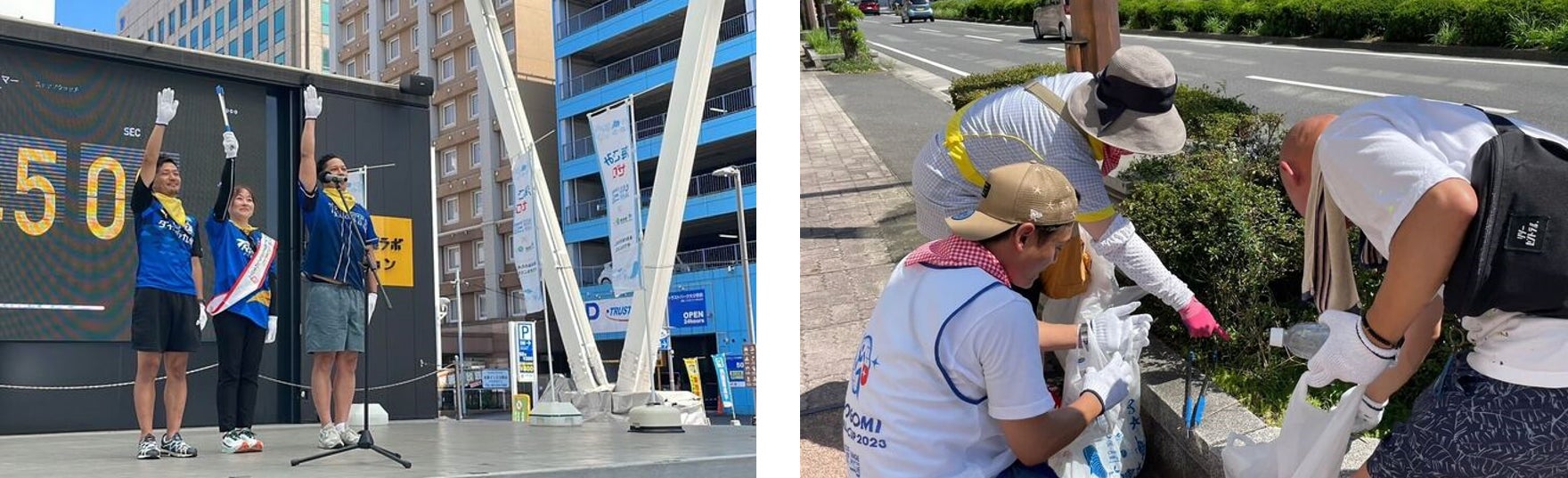 猛暑の中行われ、急遽競技時間を通常より15分短縮した45分で開催した大分 STAGE。ファミリーによる参加の他、高校生や一般企業、さらに戦隊ヒーローによるチームの参加も見受けられ、バラエティに富んだ大会となりました。大分市中央町一帯を清掃した23チームは、限られた時間の中懸命にごみを拾う姿が見受けられ、総量86.75kgものごみを回収しました。