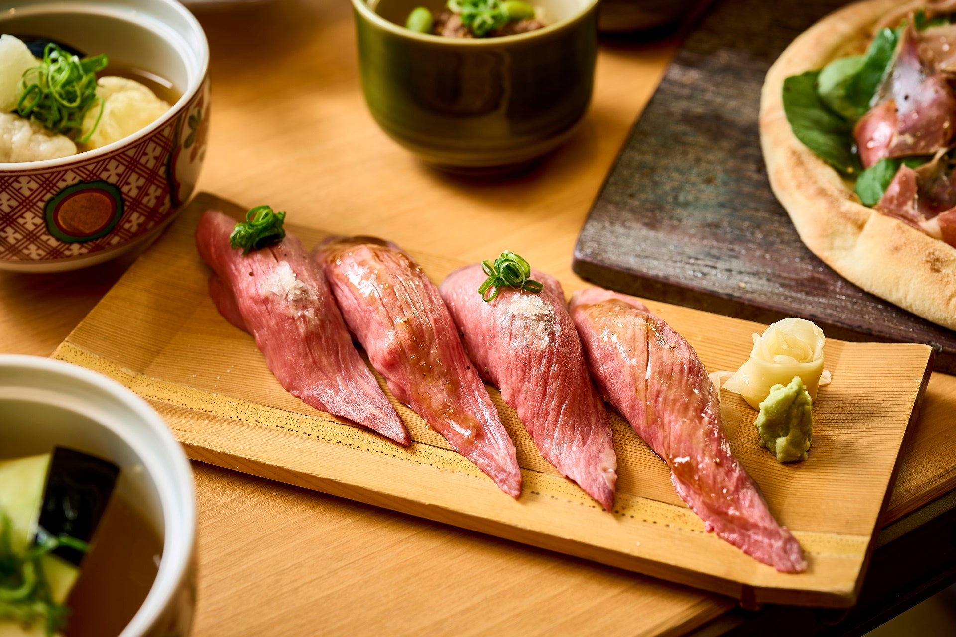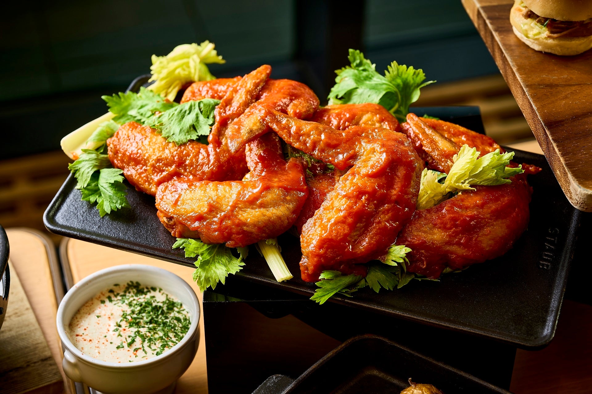 鶏肉の南蛮ソース/鴨のスモーク/炙り鱧とゆりねの冷製小茶碗蒸し/牛すね肉の煮こごり/バッファローチキンウイング/ジャーマンポテト/牛しぐれ煮おこわ/かわはぎの唐揚げ甘酢あん /やきとり 六味添え/黒酢とまと酢豚/ジャンボハンバーグ/ローストビーフ/プルドポークバーガー/生ハムとルッコラのピッツァ/ホルモン焼きそば/ジーパイ/漬けマグロと明太子の山かけ丼(平日限定)/天ぷら/香ばし焼き味噌ラーメン/握り寿司(土日祝限定)