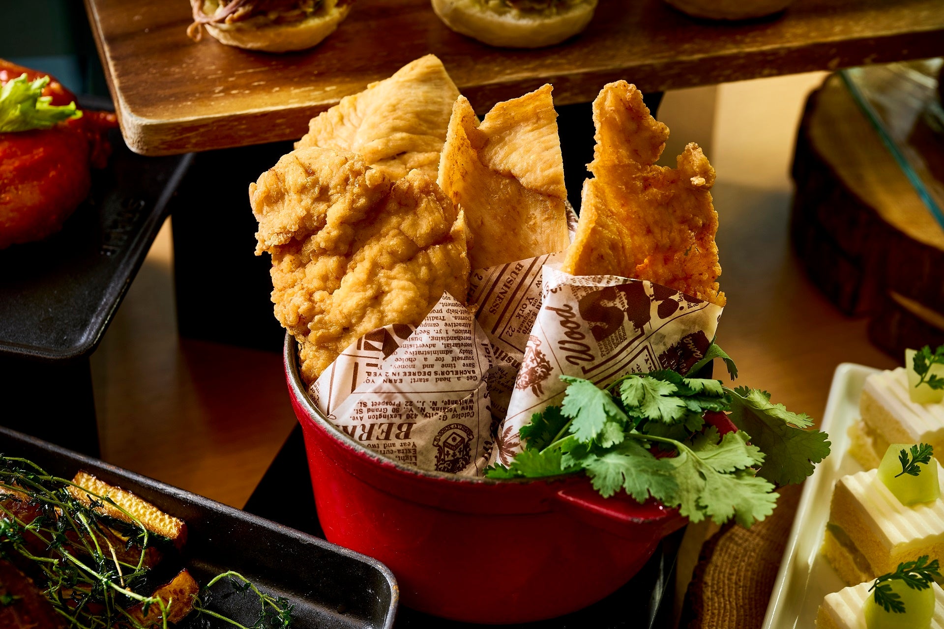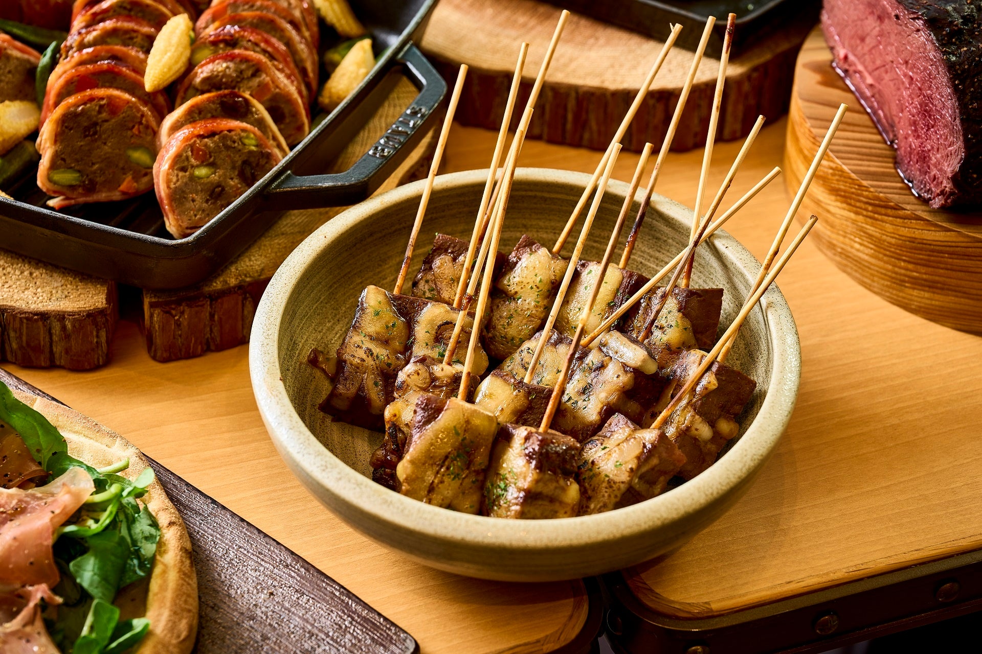 鶏肉の南蛮ソース/コールドミート盛り合わせ/ほぐし鶏中華くらげ/鯵のたたき サラダ仕立て /日替わり冷やし京やっこ/だし茶漬け/バッファローチキンウイング/ミートローフベーコン巻き/ジンギスカン/黒酢とまと酢豚/飲茶/牛すじ肉と揚げ生麩の煮込み/うなぎ天と賀茂茄子の揚げ出し/えびつみれ鹿の子揚げとチーズカリカリ揚げ/ローストビーフ/プルドポークバーガー/ホテルオリジナル引き立てコンソメスープ/生ハムとルッコラのピッツァ/牛串炙りチーズ 味噌デミソース/ポークバックリブ/鮑のワイン蒸しフレッシュトマトソース(土日祝限定)/握り寿司/肉寿司(ローストビーフ握り寿司)/天ぷら