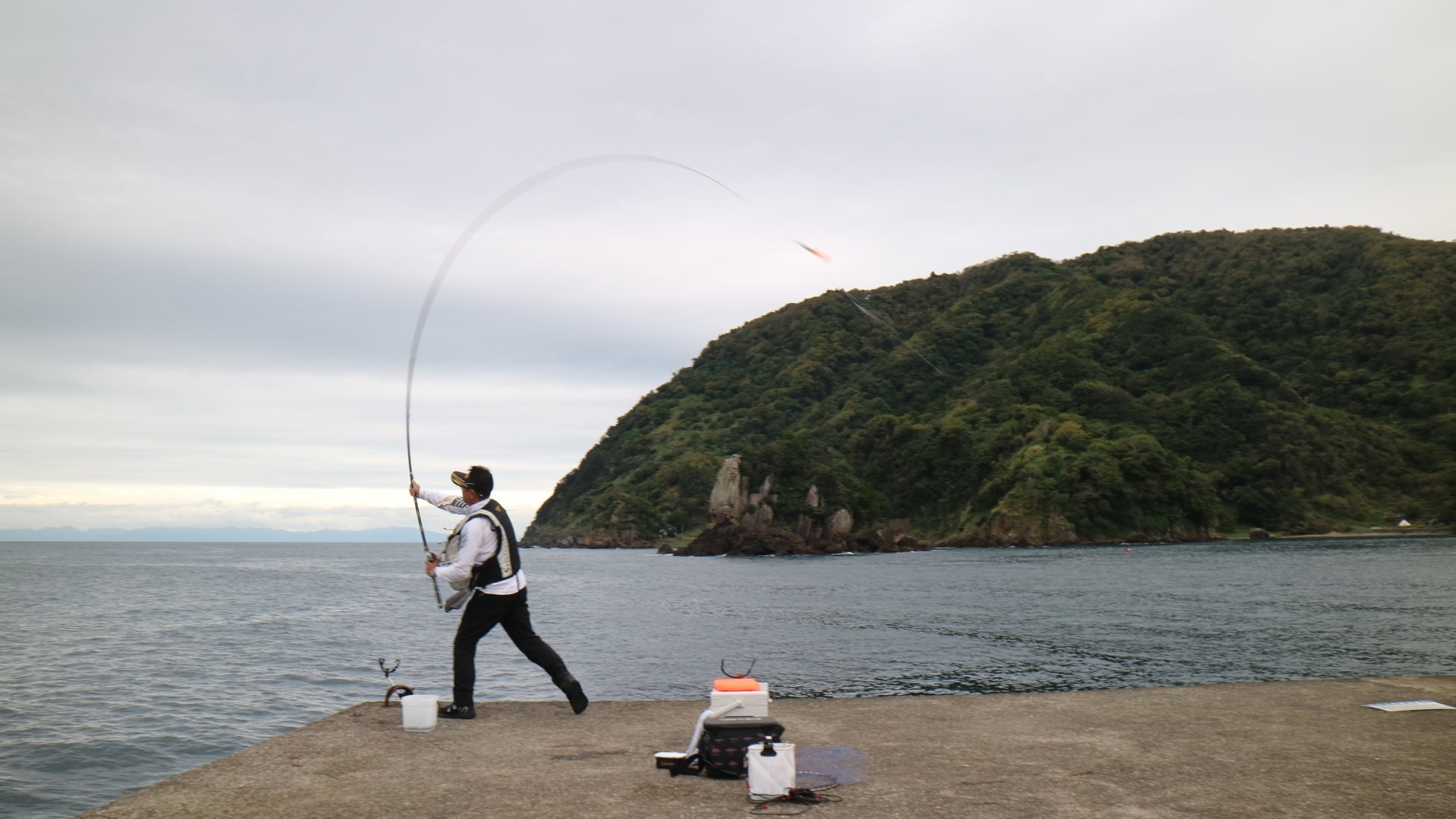 今回のフィッシングDAYSは、静岡県の伊豆半島・田子の堤防から両軸遠投カゴ釣りに挑戦。