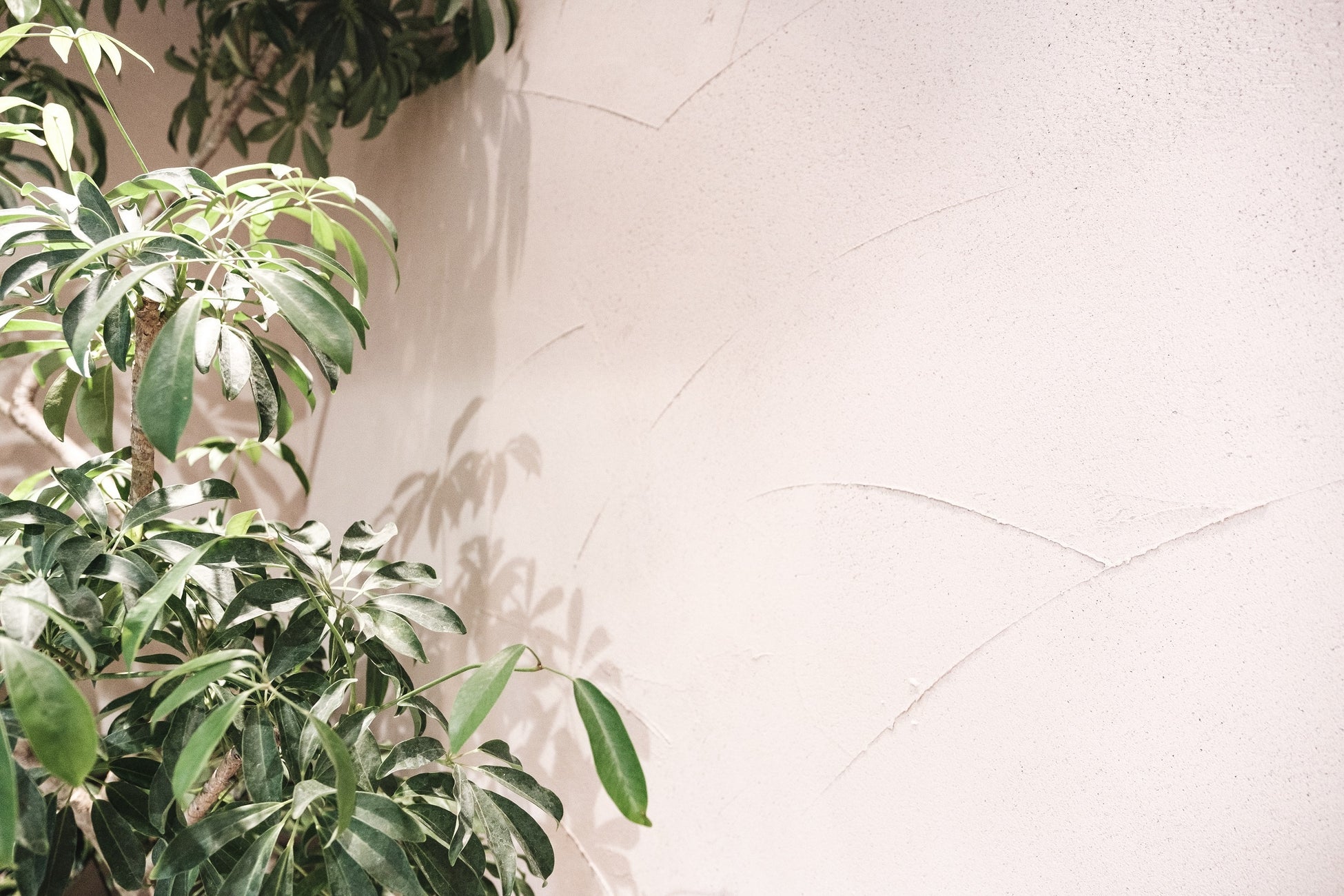 店舗の内壁には、壁材の塗料にカカオハスクを織り交ぜています。粒状のカカオハスクを見て触って、感じることができます。