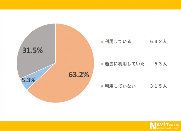 現在、動画配信サービスを利用していますか?というアンケートに対して「利用している」と回答した人は63.2%で「過去に利用した」と回答した人が5.3%で合計すると68.5%の人が動画配信サービスを利用したことがあるとわかりました。