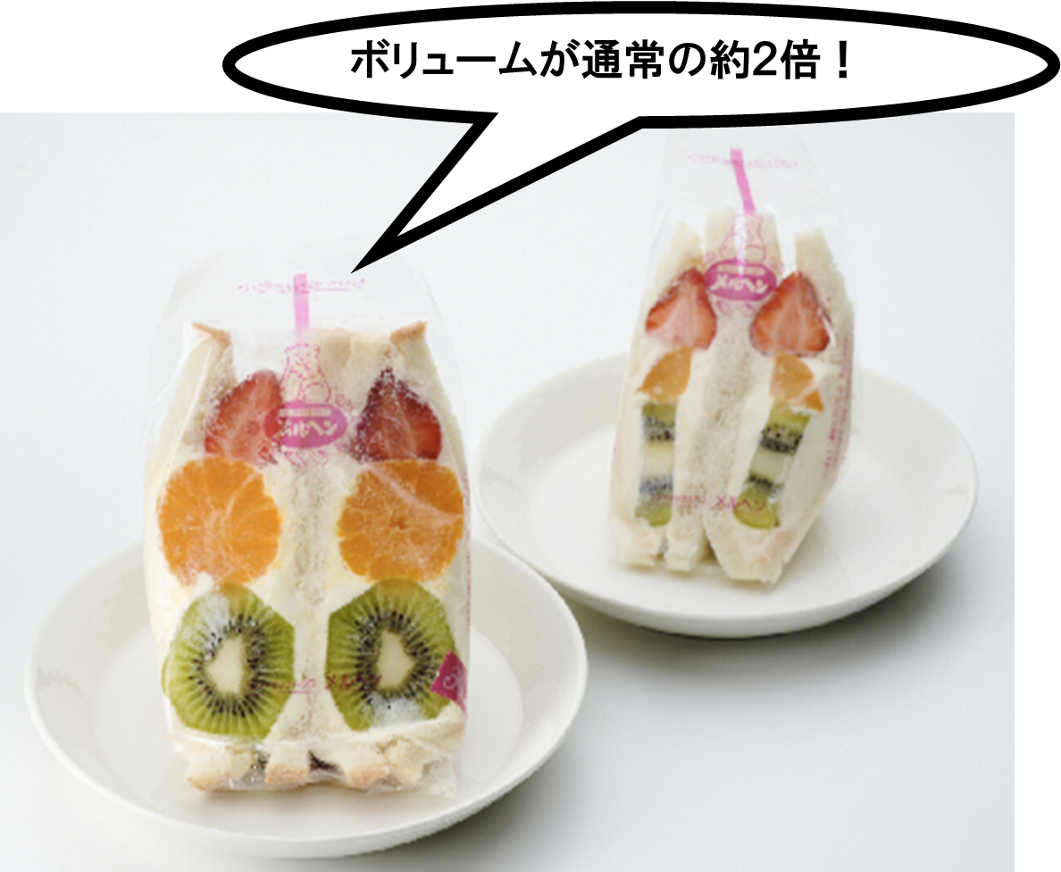 〈メルヘン〉左)苺、まるごとみかん、キウイとたっぷりの生クリームが入った極厚のフルーツサンド!極厚フルーツサンドスペシャル 864円 ※各日予定数4個、右)通常サイズのフルーツサンド!フルーツスペシャル 604円