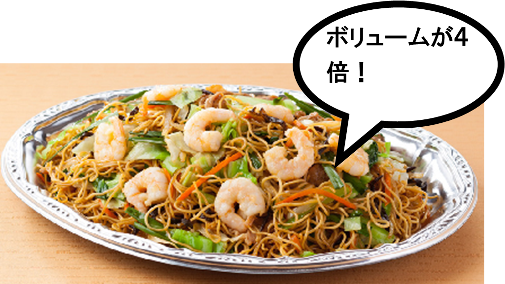 4~6人前の「上海焼そば」。オイスターソースの風味で仕上げています。