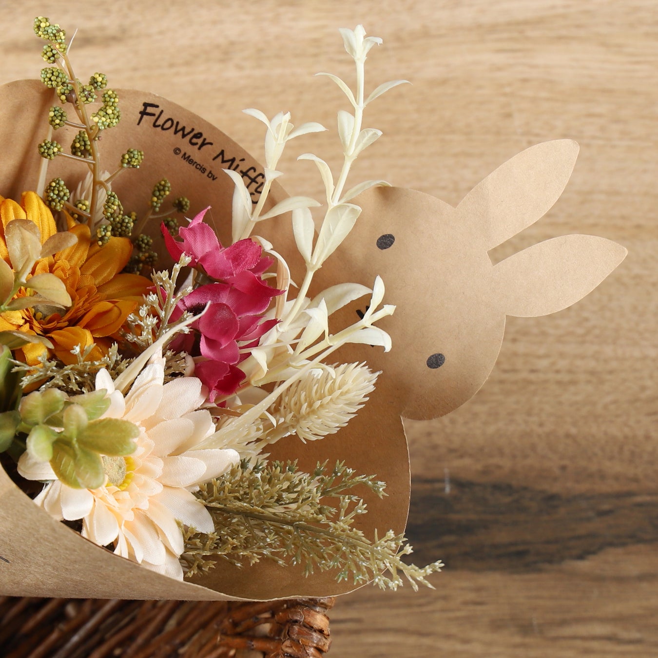 フラワーミッフィーオリジナルブーケペーパーでラッピングいたします。