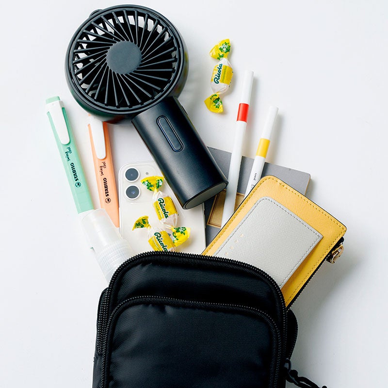 スマホショルダーはコンパクトな見た目以上に、スマホや財布、ペンやリップなど、お出かけに必要なものがしっかり収納可能。財布としても使えるフロントポケットや背面ポケットも