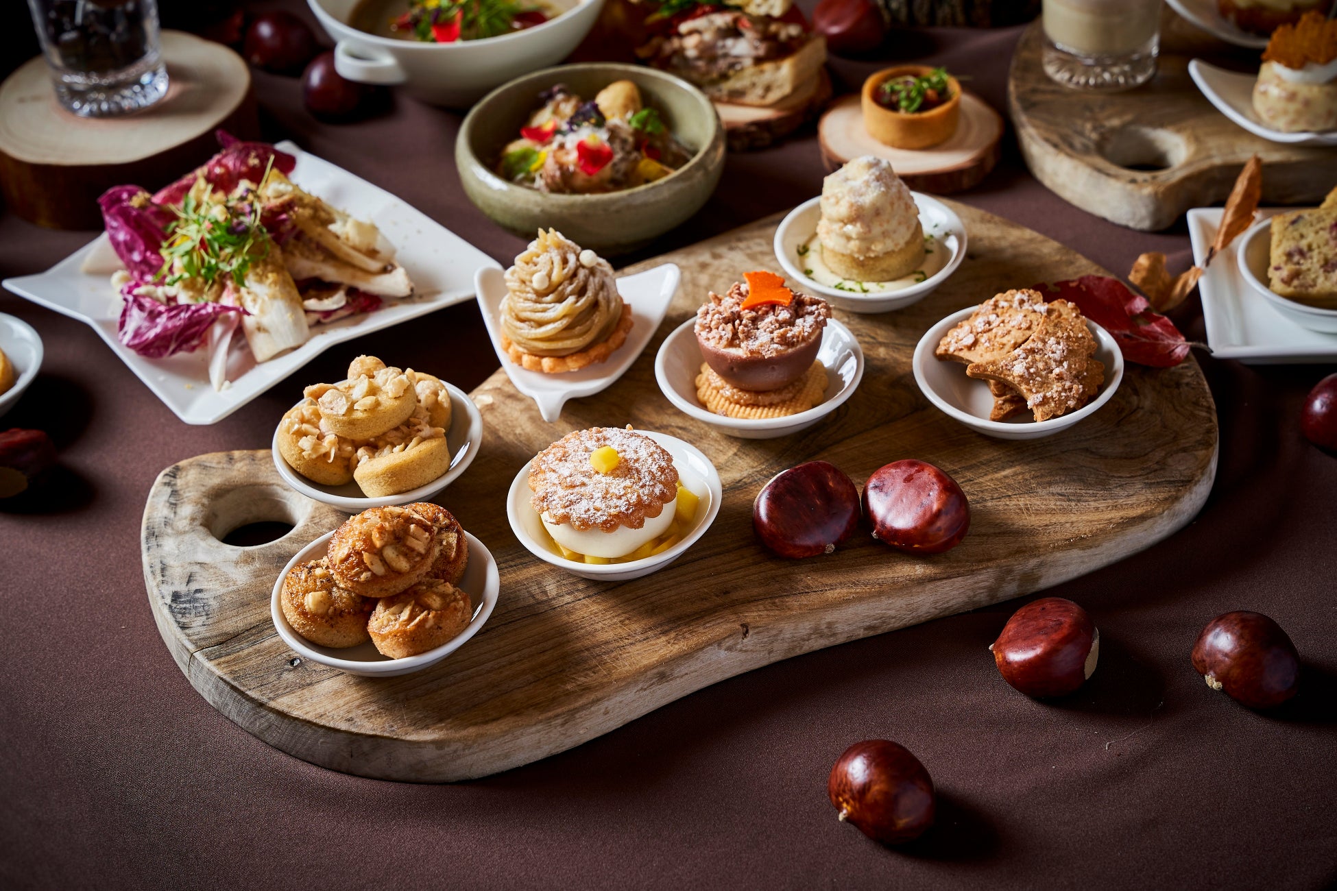 イタリア出身の「スプレンディード」料理長アレッシオと、フランス出身のエグゼクティブペストリーシェフ フレデリック・モローが手がける今回のアフタヌーンブッフェには、それぞれのシェフが秋の魅力を表現したこだわりのスイーツ25種とセイヴォリー7種をご用意しました。