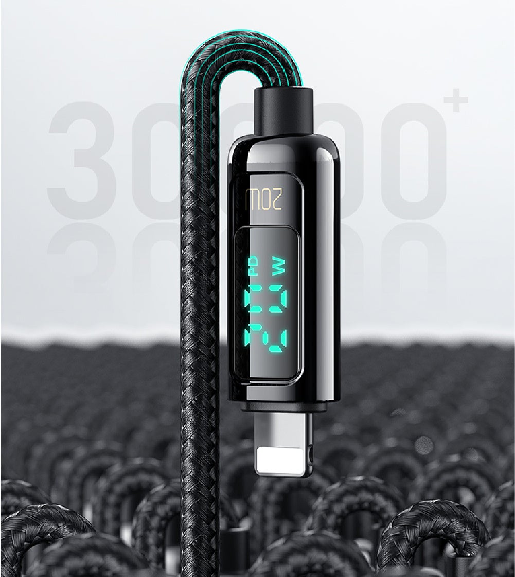 GeeCable-Mcはスマートチップでリアルタイム充電ワット数が表示されるため、他のケーブルでは電圧と電流だけが表示されるのとは一線を画しています。