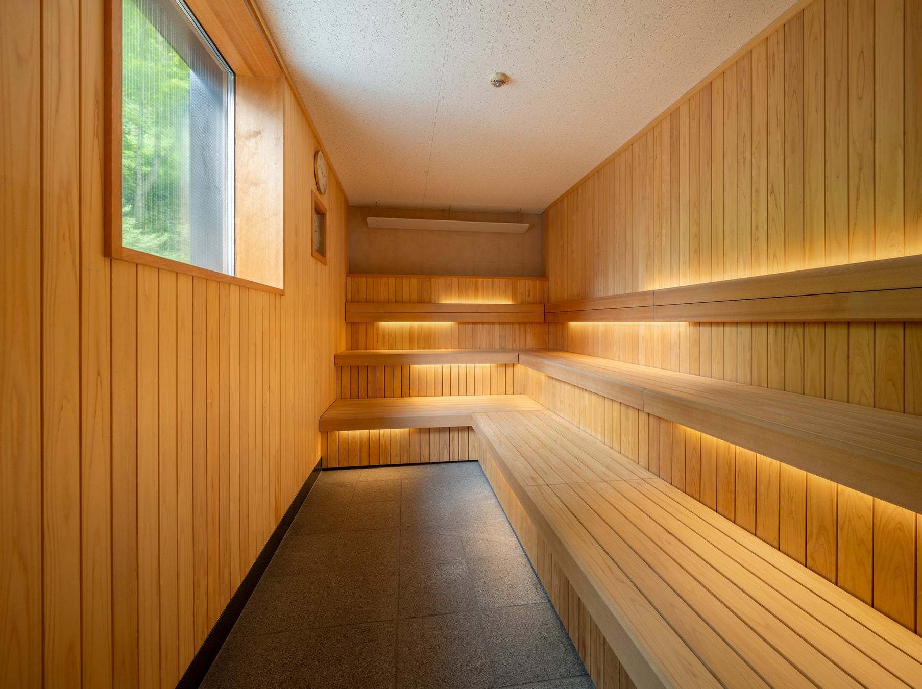 特徴1、自然と調和する森をのぞむサウナ
