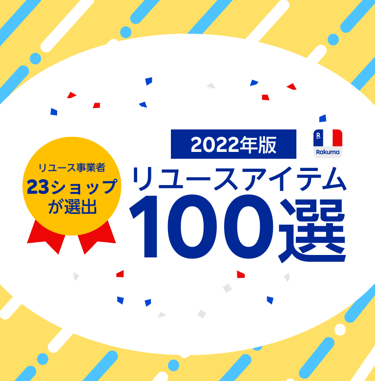 「リユースアイテム100選」は、循環型社会の実現に貢献することを目指す「楽天ラクマ」が、リユース市場において支持されているアイテムを100選として選出することで、より多くのユーザーがリユースアイテムに興味を持っていただくことを目的に、今回初めて開催しました。「楽天ラクマ」が運営する「ラクマ公式ショップ(リユース)」に出店している事業者を対象に、「楽天ラクマ」の取引に限らず、2022年の1年間を通じて特に売れたアイテムや、5年後、10年後も使い続けられるアイテムについてアンケート調査を実施し、得られた回答から「楽天ラクマ」が独自に集計して選出しました。