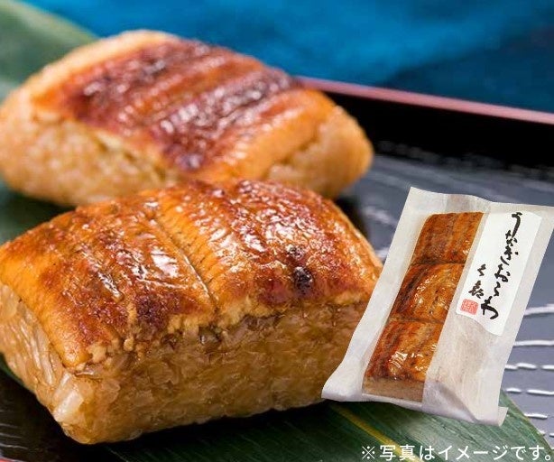 厳選した鹿児島県・宮崎県産の鰻の皮をそぎ落とした蒲焼と、佐賀県産もち米「ひよくもち」100%の押し寿司風のおこわです。甘さ控えめのたれで焼きあげ、鰻の旨みともち米のもっちり感が風味一体に。