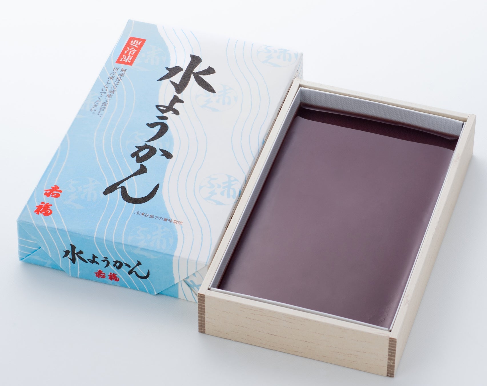 北海道産小豆のこし餡を、すっきりした甘さの瑞々しい水ようかんに仕立て、折箱に流し込んだ“一枚流し”の商品です。お好みの大きさに切り分けてお召し上がりいただけます。