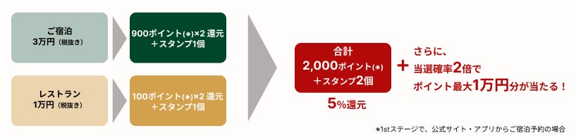 第1弾 1. ご宿泊・お食事でポイント2倍! 2. スタンプを貯めるだけで最大1万円分のポイントが当たる[期間:2025年1月10日(金)~、順次]