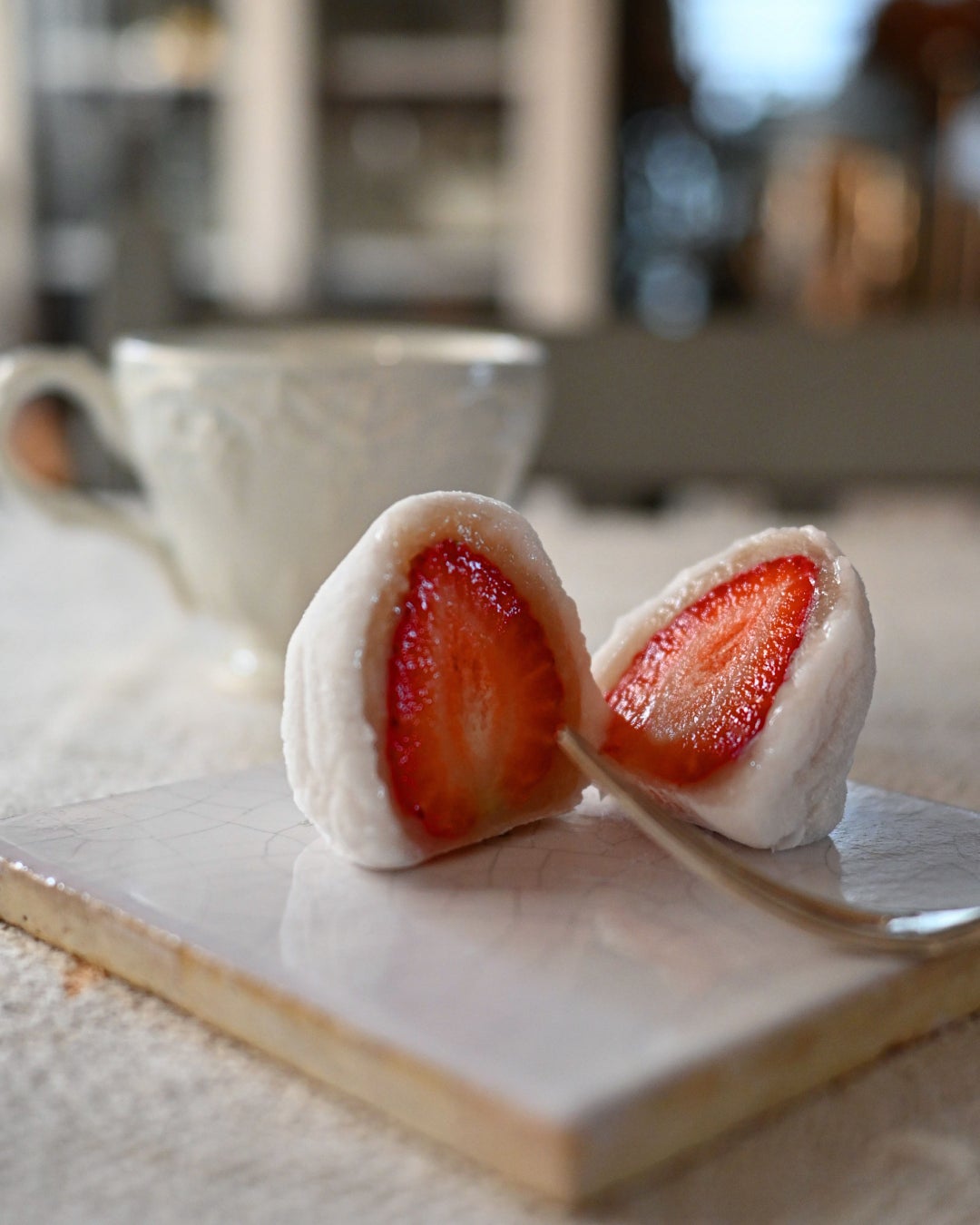 白いタイルは菓子皿