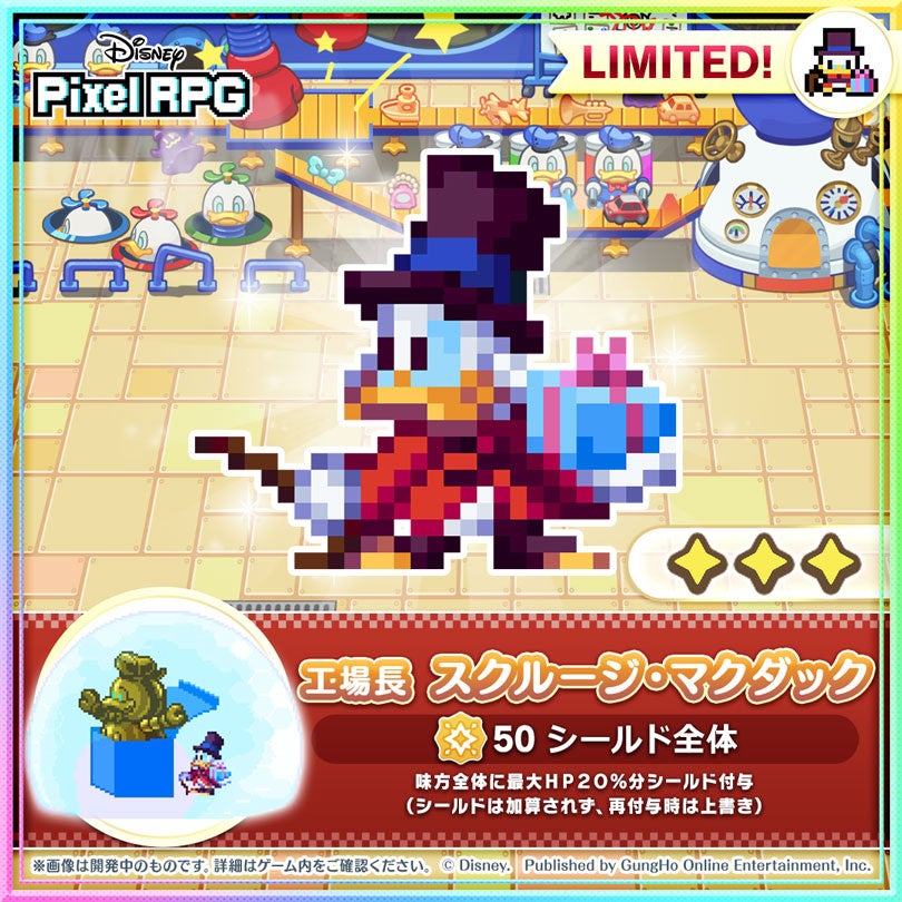 あわせて、「イベント応援ログインボーナス」の実施や、新キャラクター「エンジニア ドナルドダック」「工場長 スクルージ・マクダック」がそれぞれラインナップされた期間限定ガチャも登場中です。
