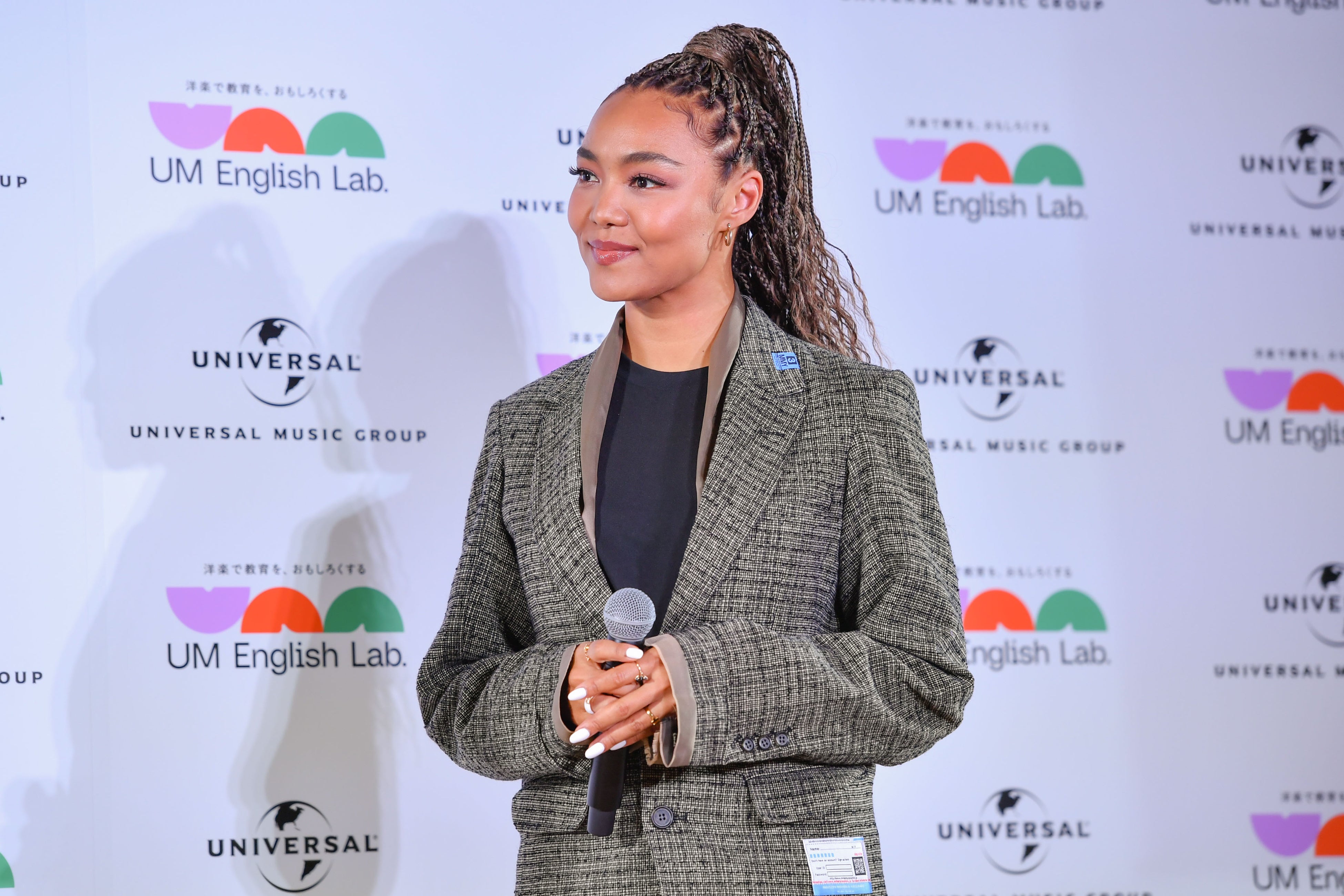 立ち上げ同日の3月14日(金)には、東京都の公立中学校である渋谷区立原宿外苑中学校にて開設発表イベントが行われました。イベント前半は記者会見として、渋谷区立原宿外苑中学の駒崎彰一校長とユニバーサル ミュージック合同会社 社長兼最高経営責任者(CEO)藤倉尚による挨拶、「UM English Lab.」の概要説明のあとに、トーク・ゲストとしてクリスタル ケイが登場し、楽しみながら勉強することや洋楽を通じて英語の単語やフレーズを覚えることの大切さを記者会見に参加した同中学校の3年生の生徒約90名を前に語りました。