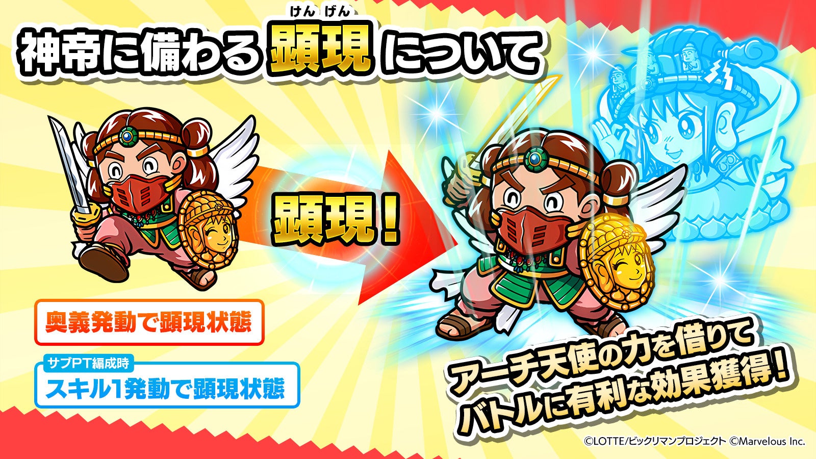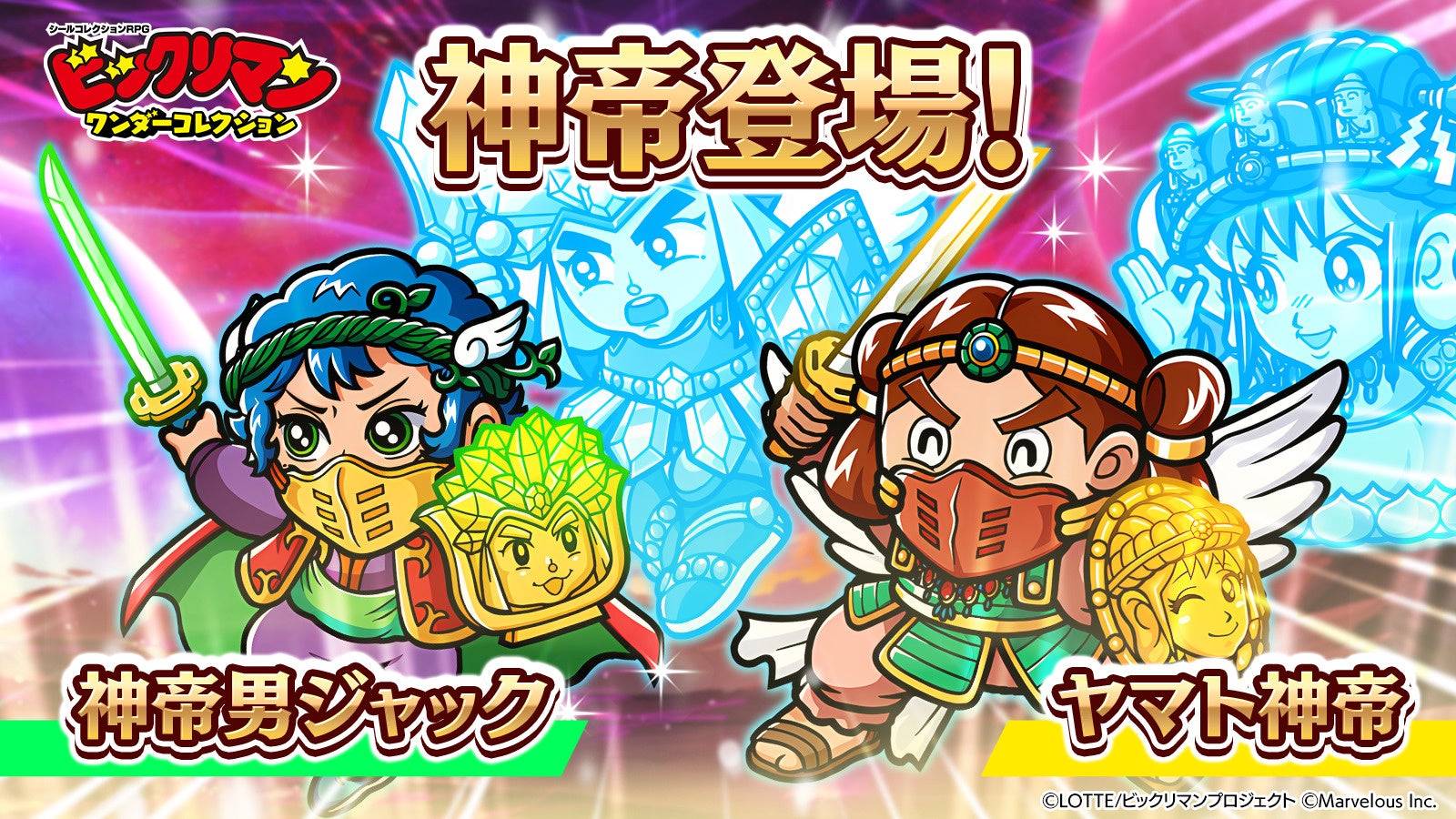 シールコレクションRPG『ビックリマン・ワンダーコレクション』:神帝登場!【聖魔大戦編15章】を公開! 新キャラ「ヤマト神帝」、「神帝男ジャック」が登場!期間限定コンテンツ「大乱戦 魔肖ネロ」の開始!