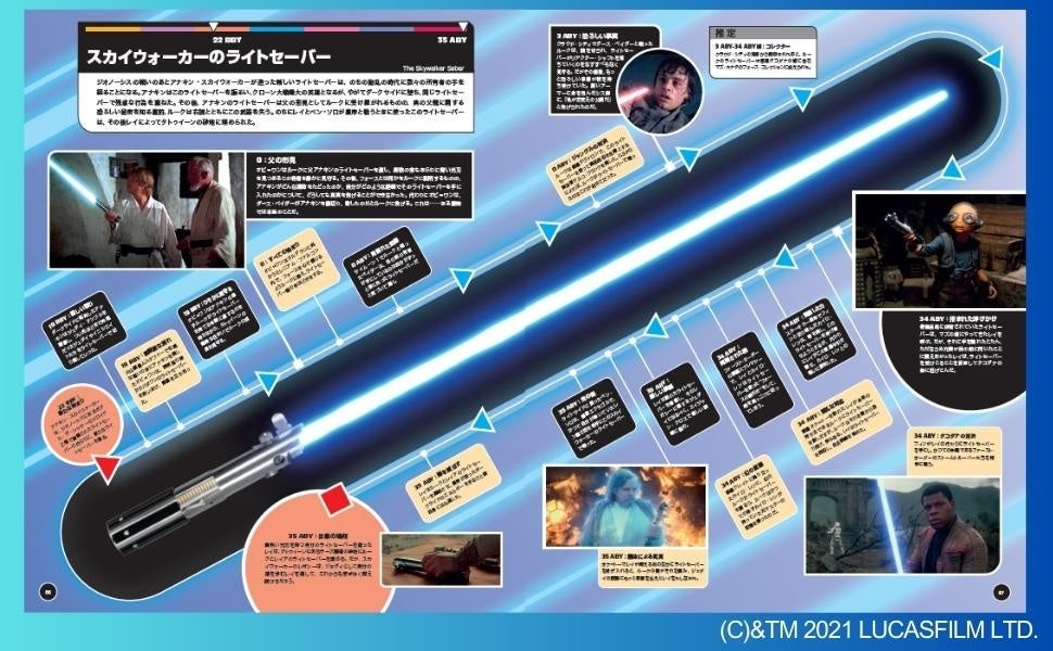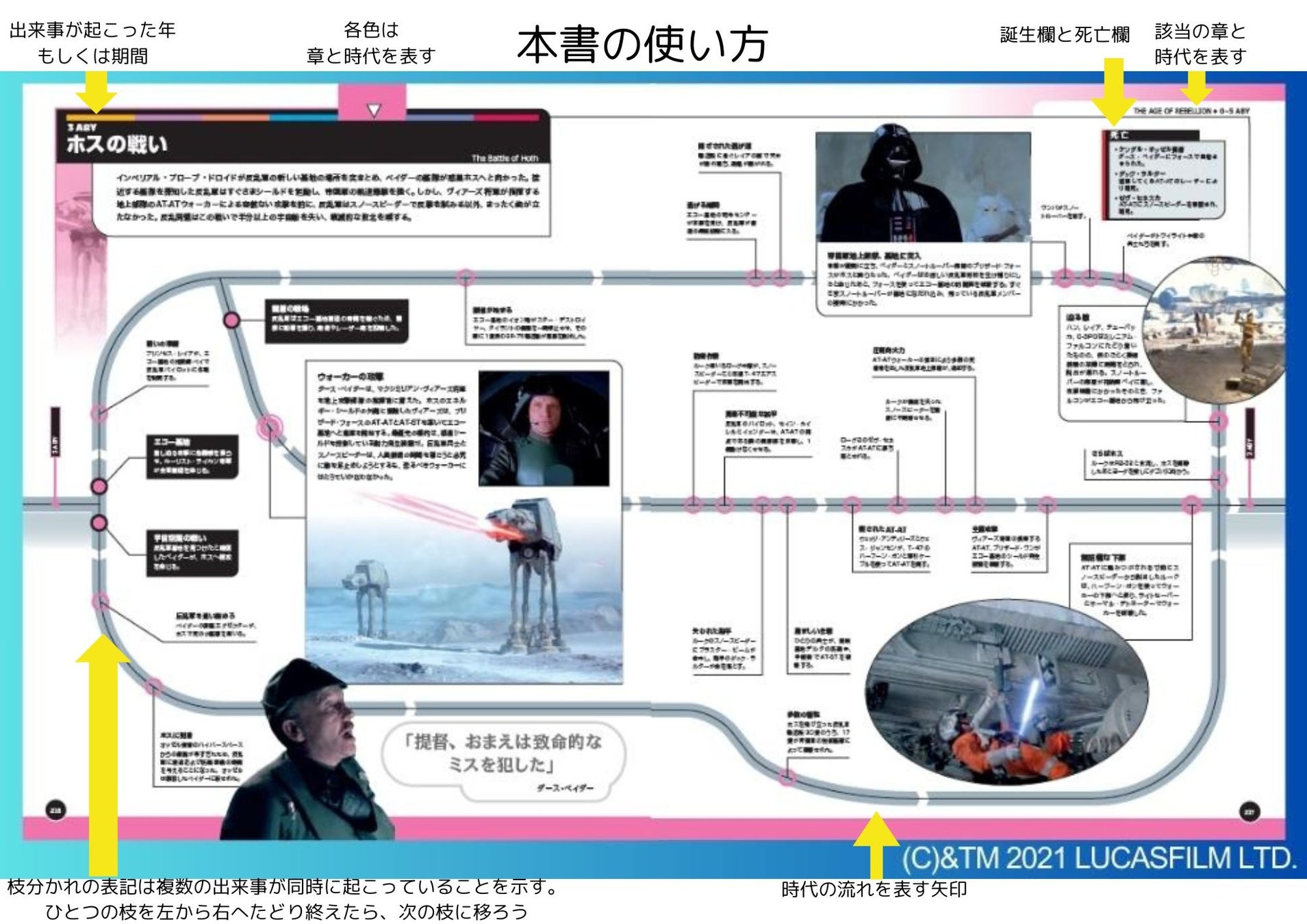 ②様々な媒体で発表され、かつ日本でも馴染みの薄い媒体の作品も網羅し、壮大かつ膨大なスター・ウォーズの世界を視覚で楽しめるビジュアル年表。