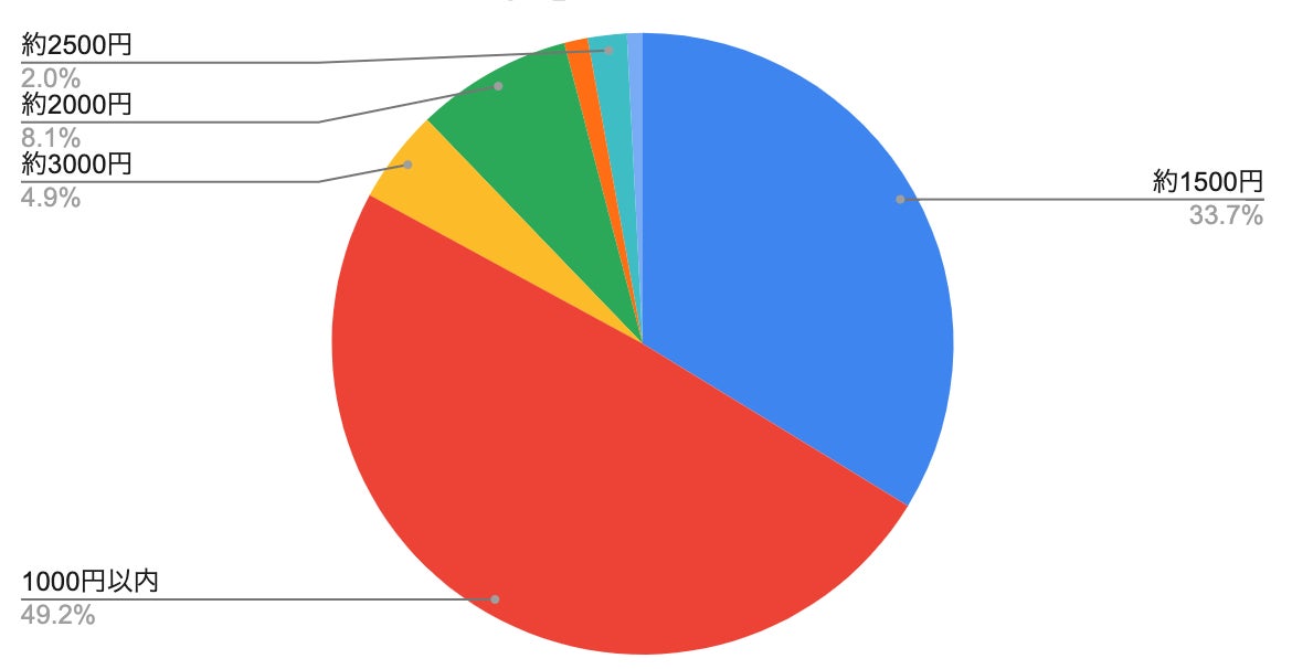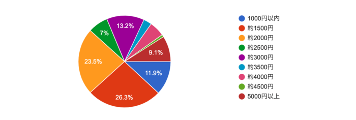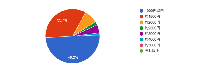 ランチの予算は「1000円以内」が約半数!2番目は「約1500円」で33%以上という結果に。そうなると、約80%以上の人が、昼の予算は「1500円以内」と決めていることがわかりました。