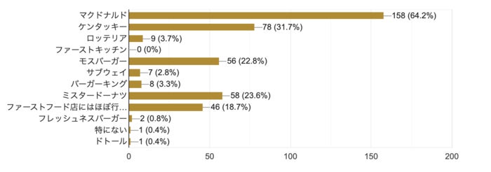 なんと、64%以上が「マクドナルド」と回答。2番目に多かったのが「ケンタッキー」で31%。