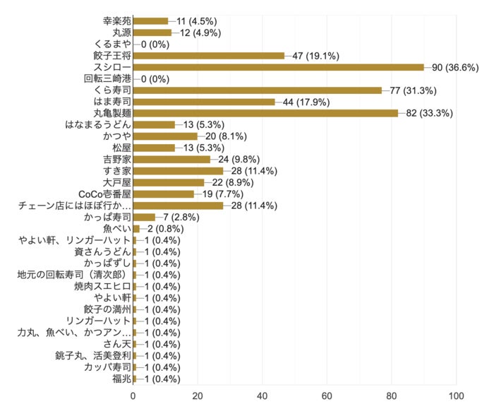 その中で目を引いたのが2番目に多かった33.3%の「丸亀製麺」。値段の安さはもちろんですが、メニューも豊富で、とにかく早いのが人気の秘密。「外食はできるだけ短い時間で」というコロナ禍のニーズにぴったりなチェーン店なのかもしれません。