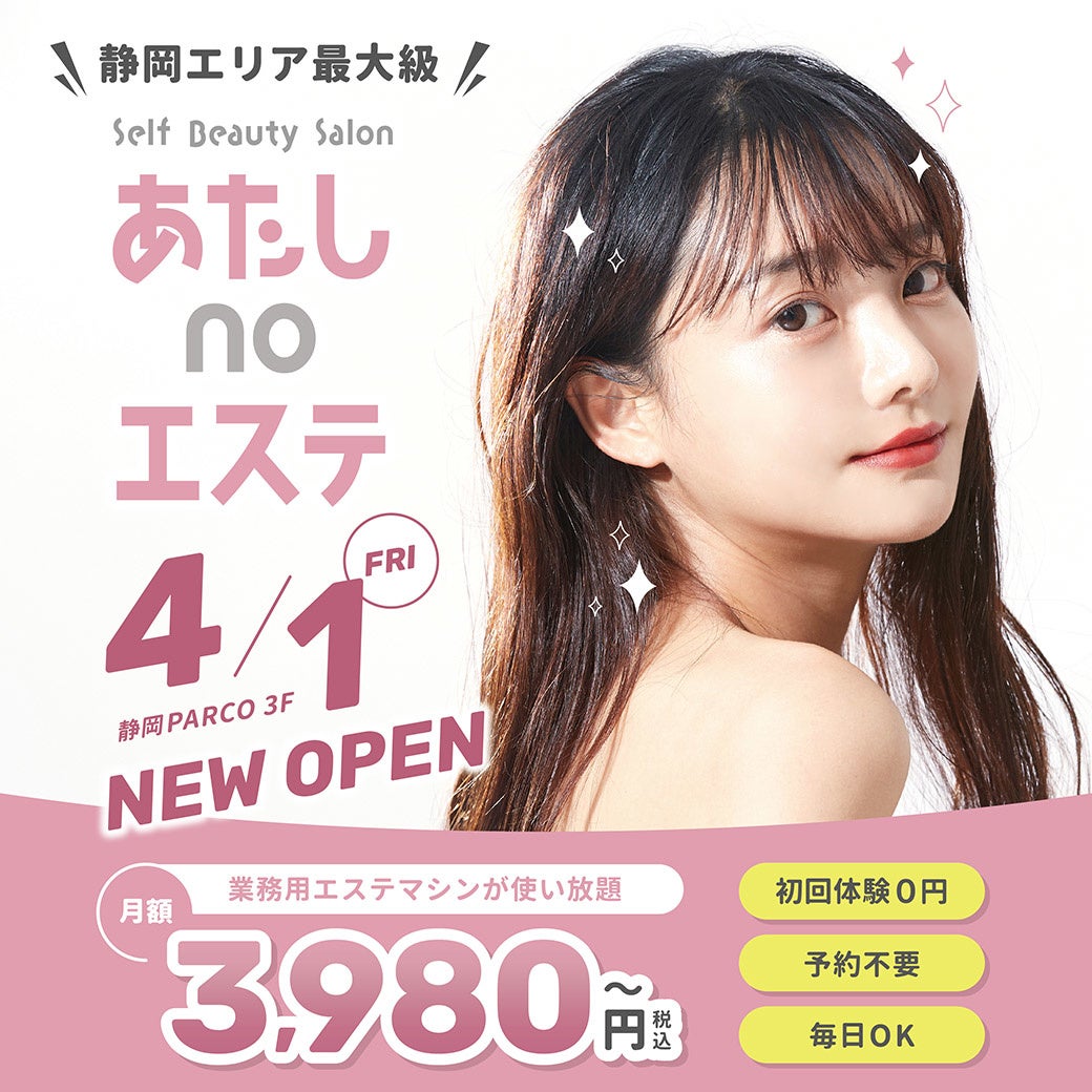 4/1(金) 静岡PARCO 3Fに、”静岡エリア最大級” の定額制セルフビューティーサロン「あたしnoエステ」がオープンいたします。