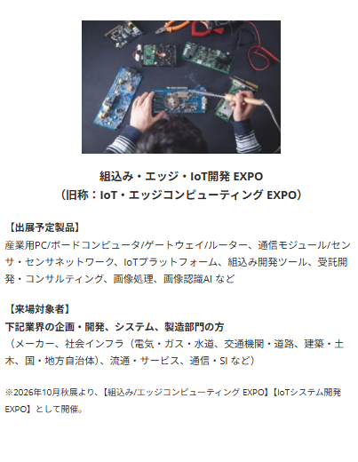 本リリースに掲載の写真は、構成展紹介のイメージ写真を除き、前回開催(春展:2025年4月/東京、名古屋展:2025年5月)の会場風景です。また、セミナー講演内容は、開催時には内容が変更になる場合がございます。あらかじめご了承ください。