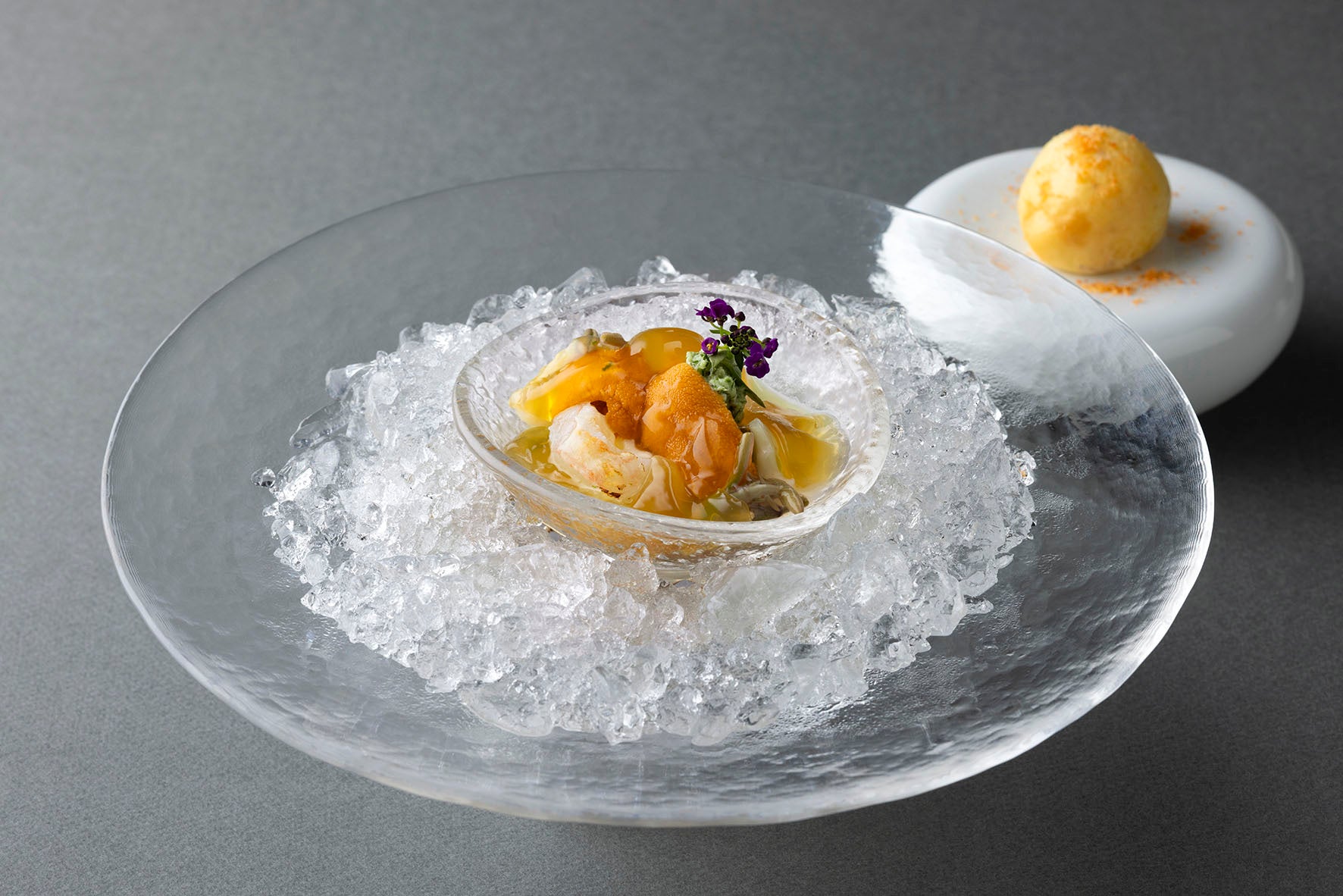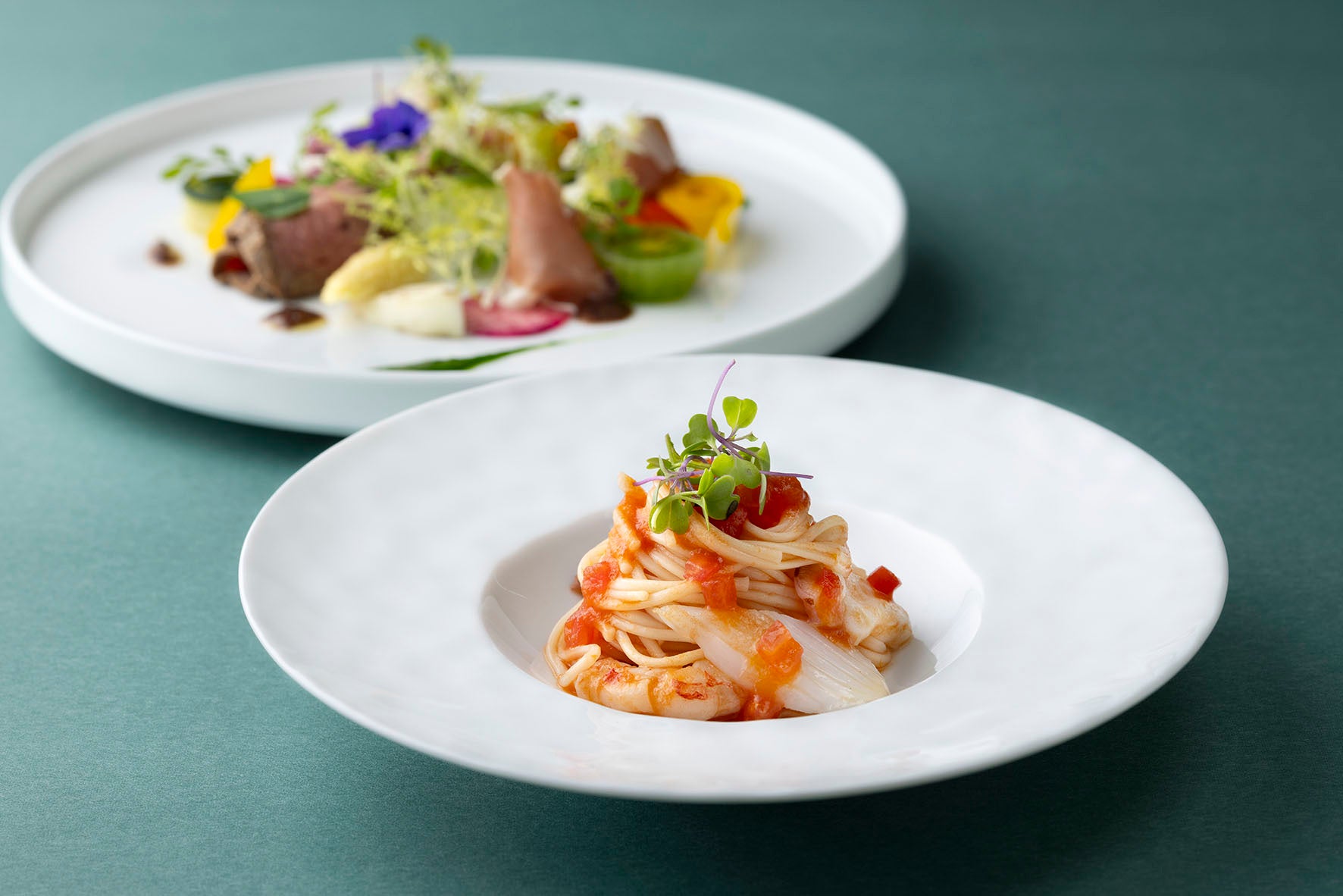 日本全国から取り寄せた、選りすぐりの海の幸と里の恵みが織りなす至極のシグネチャーコース。まるでフレンチ会席のようにめくるめく美しい料理の数々が、至福の美食体験へ誘います。8月19日(火)まで夏の食材を用いた季節感あふれるメニューをご提供しています。