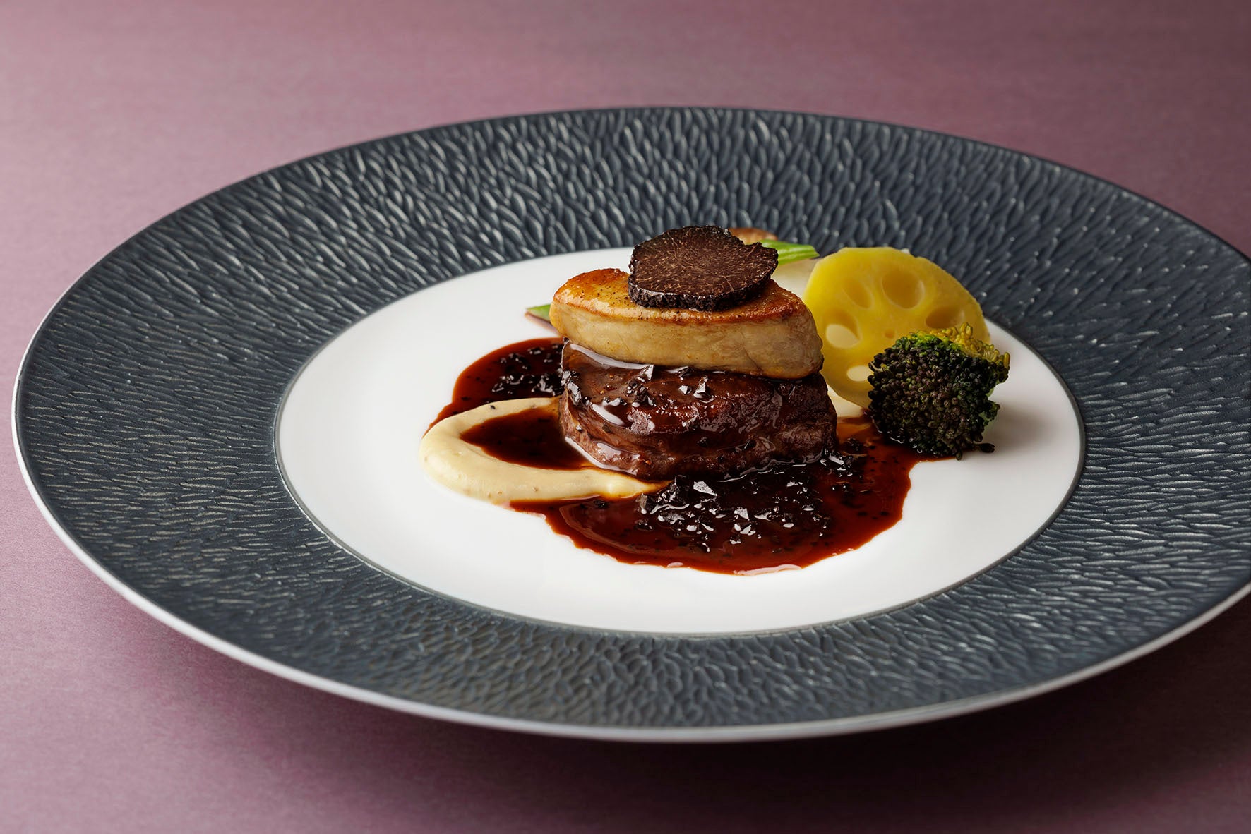 メインディッシュのお肉に、フォワグラと芳醇なトリュフソースを添えた、贅沢な追加オプション
