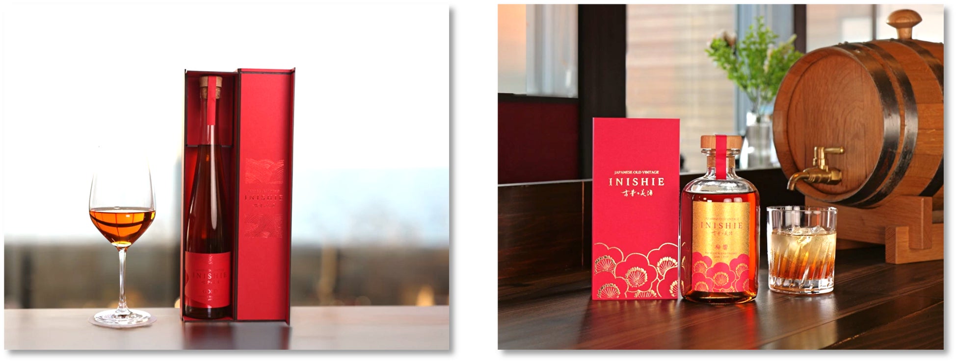 そしてこの度、「若年層や女性にも好まれる古酒」をコンセプトに、プレミアムブレンドシリーズから『古昔の美酒 GOLD』『古昔の美酒 梅響』を3月3日(月)より販売開始。『古昔の美酒 GOLD』は、ブレンドすることで柔らかく飲みやすい口当たりを実現。日本酒が苦手な方や、古酒を飲んだことのない方にも喜んでいただける味わいに仕上げました。『古昔の美酒 梅響』は、樽熟成によりフルーティさの中にほのかな苦味を感じさせる、これまでにない味わいをお楽しみいただけます。