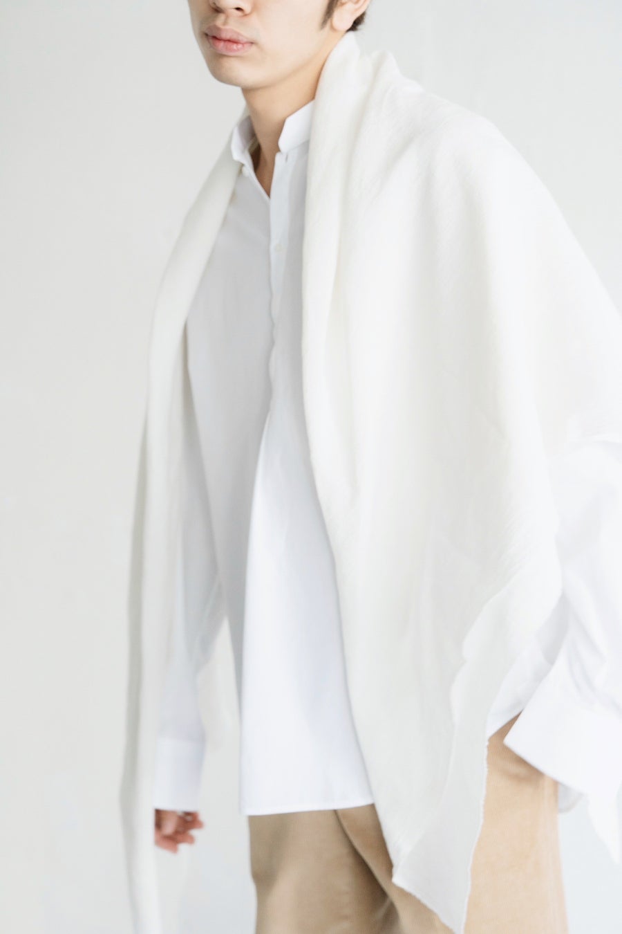 ただ布を纏うだけで、これほどまでにシチュエーションに対応できる事や、「服を着る」という行為からの開放感、自分の使い方の発想とスタイルが結び付く感覚の新鮮さは、実際に使用してみるとより強く感じられます。