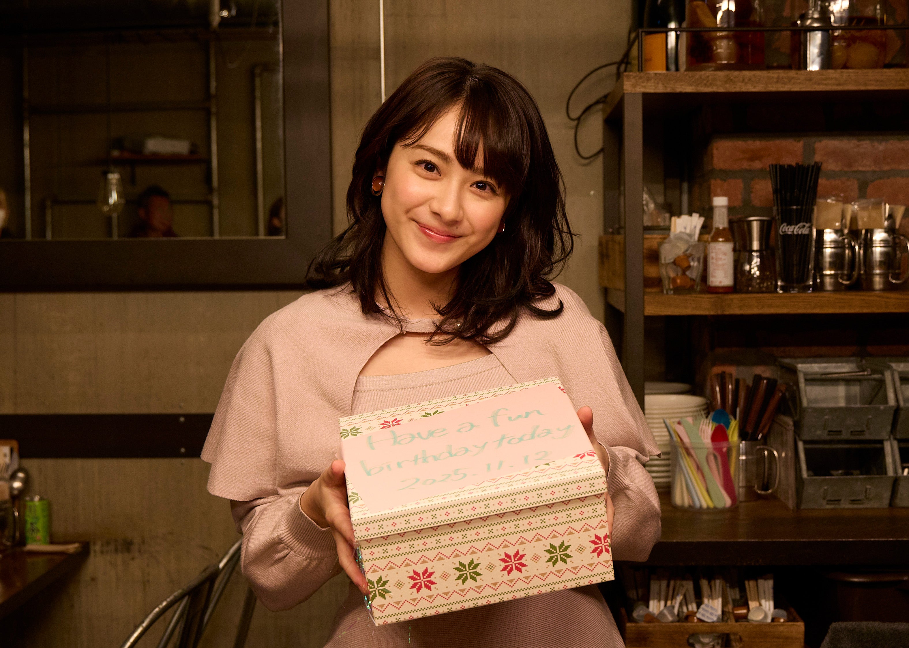 平と林がとあるシーンのリハーサルを終えると、「本日11月12日は平祐奈さんのお誕生日です!」とスタッフから声がかかり、みんなでハッピーバースデーの歌でお祝い。お皿と小鉢のプレゼントを渡すと、平は「かわいい!開けてもいいですか?(でも)もったいないかな?」と葛藤しながら、嬉しそうにプレゼントを開けていました。「素敵なお皿をありがとうございます。誕生日当日にお祝いしていただけて、現場があるってすごく幸せだなって思います。27歳、良いスタートを切ることができてとても嬉しいです。『102回目のプロポーズ』みたいに純愛ができるようにがんばります!」とコメントしました。