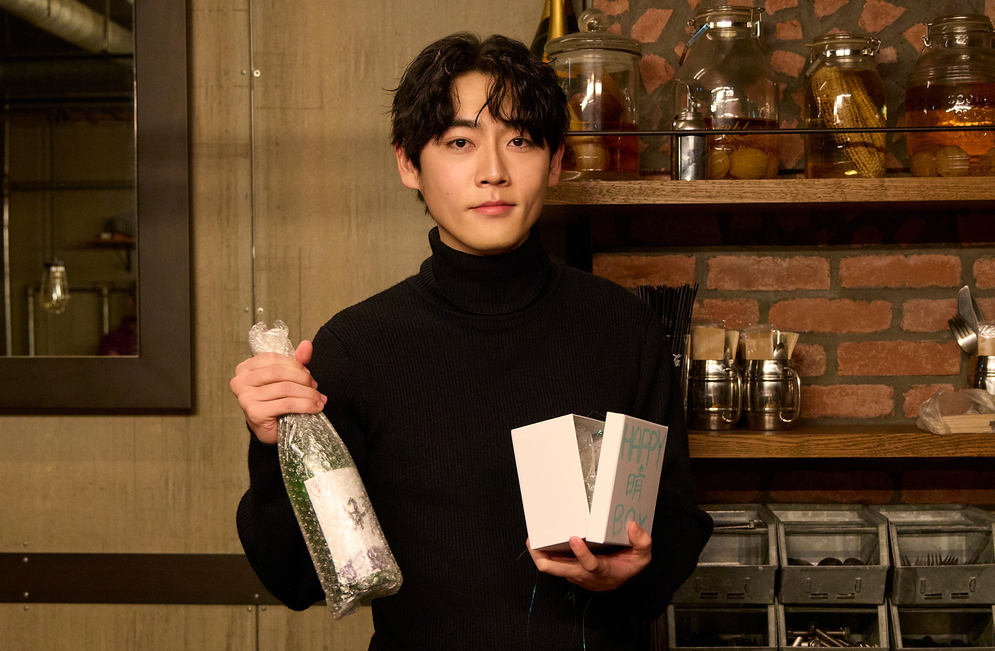 スタッフから「お誕生日おめでとうございます!」と林にプレゼントを手渡すと、林が同じ11月生まれだと知っていた平が「よかった・・・!カラスくんにお誕生日のお祝いがないのかな?と思って、申し訳ないなって思って!」と安堵していました。林は、「29歳になりまして、みなさんと今日を迎えられて嬉しく思います。最後まで良い作品を作れればと思います。このシーンも、いいシーンにしましょう!!!ありがとうございました!」とコメント。プレゼントを開けると、林が演じる“晴”の文字がデザインされた日本酒とおちょこが。「すごい!“晴”って書いてある!日本酒とおちょこだ!ありがとうございます。」と喜んでいました。しかし、おちょこが2つ入っていることに気づくと、「ふたつある・・・。」と黙り込んでしまい、現場は大爆笑。林は「1人で両手で飲みたいと思います。ありがとうございます!」と笑っていました。