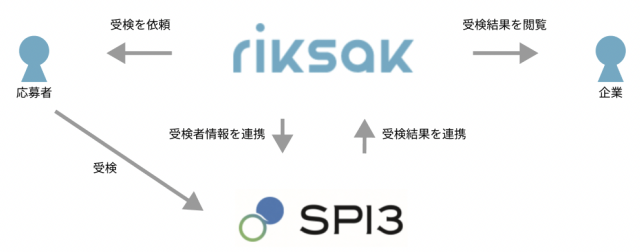『riksak』と株式会社リクルートマネジメントソリューションズが提供する適性検査『SPI3』が連携されることで、『riksak』上で応募学生への受検依頼や受検結果の閲覧ができるようになります。これにより、企業の採用業務がスピーディーかつ手間なく行えるようになります。本機能は事前に『SPI3』にお申し込み済みの企業であれば、自由にご利用いただくことができます。