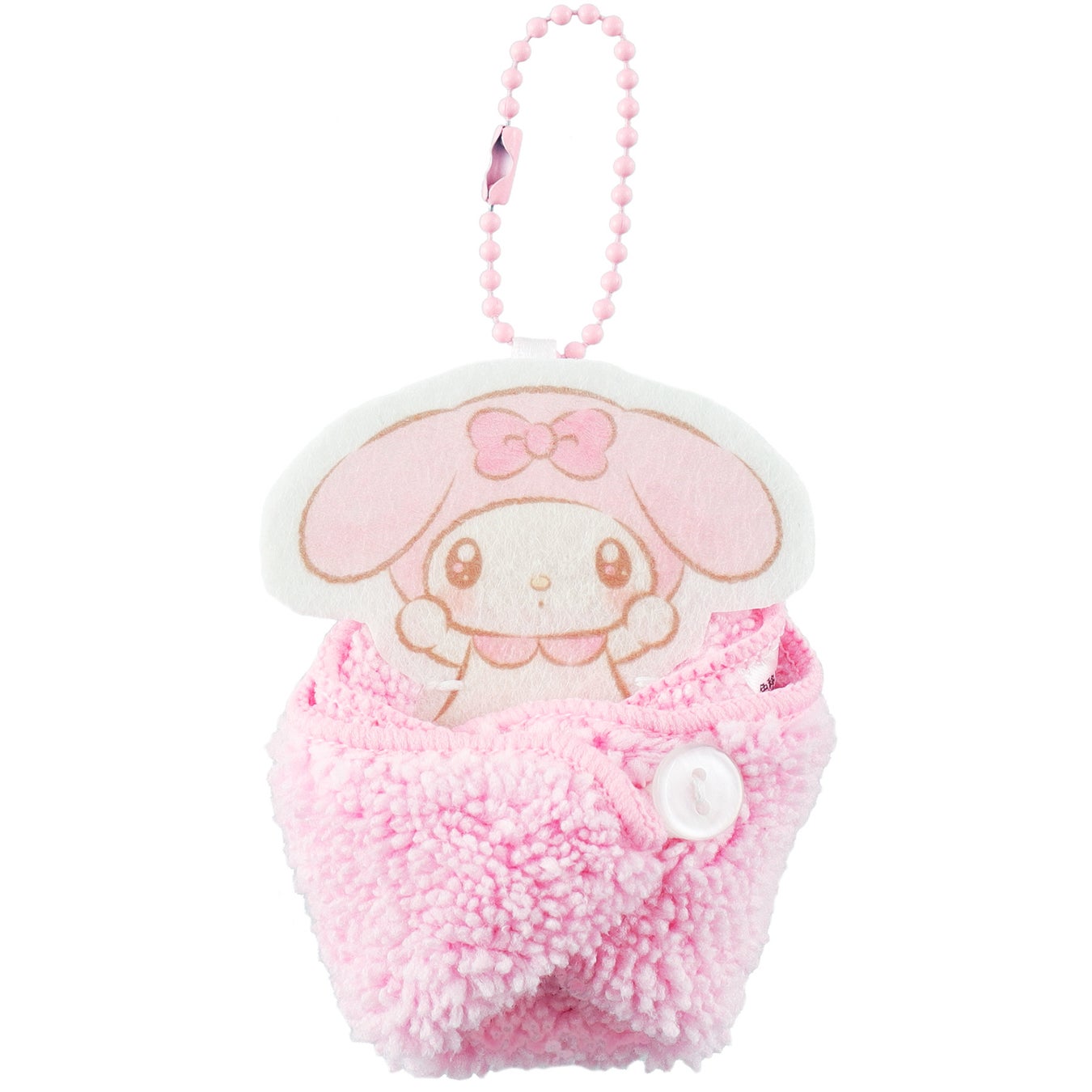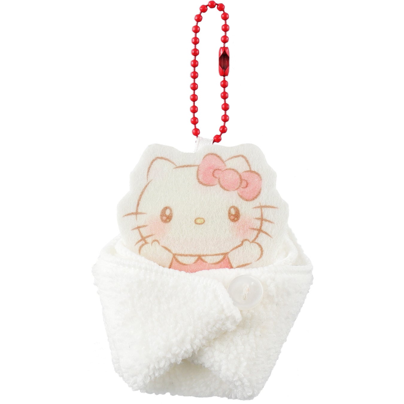 赤ちゃんがおくるみに包まれている姿から着想を得て、思わずぎゅっとしたくなるサンリオキャラクターズとミニタオルをセットにしたキーホルダーです。ミニタオルを特定のたたみ方にすると、キャラクターたちがおくるみに包まれているような姿になります。