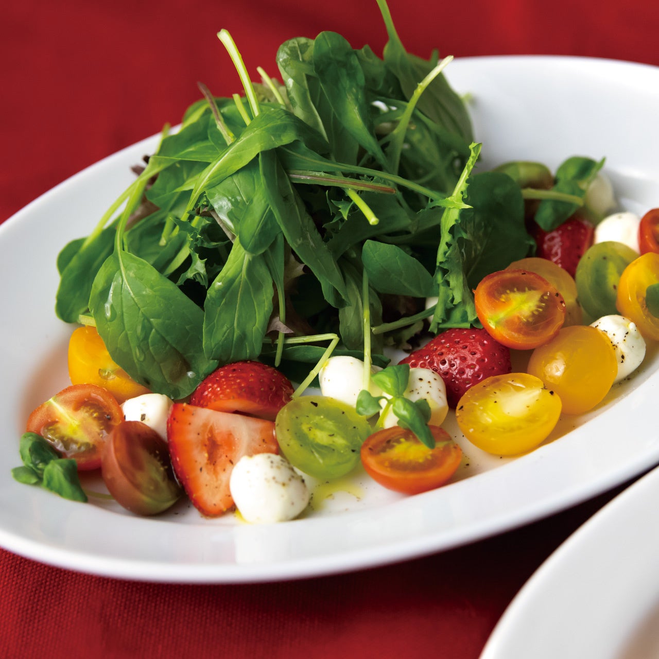 ◎苺とトマト、モッツァレラチーズのカプレーゼ サラダ仕立て