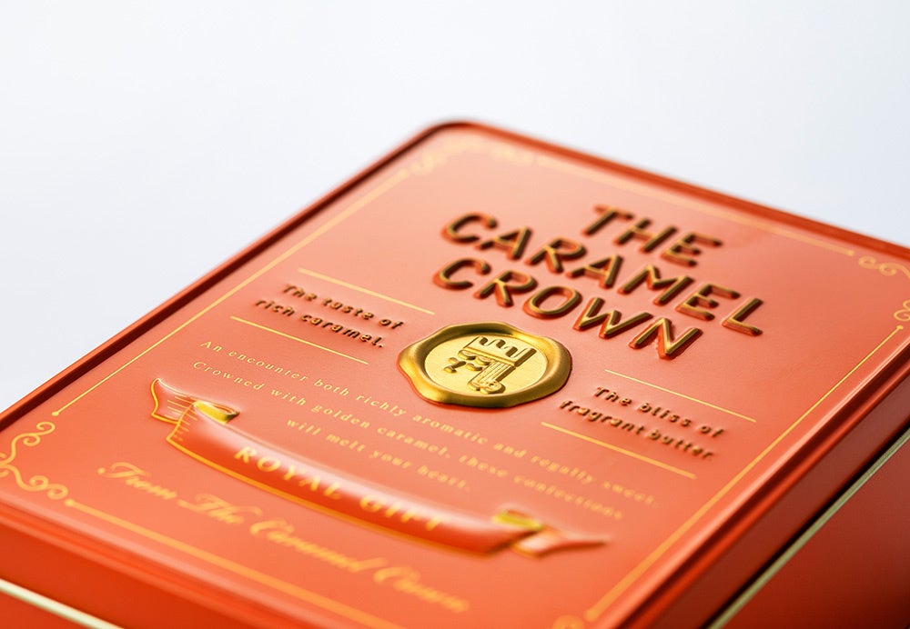 とろけるキャラメルと、溢れるバターの香りの出会い。うっとりするほどおいしいキャラメルスイーツのできあがり。THE CARAMEL CROWN “黄金に輝くキャラメルの王冠”を纏った王子。艶めきを放つその王冠は、おいしさの証です。香ばしく、甘く、深く。心までとろけるひとときを。