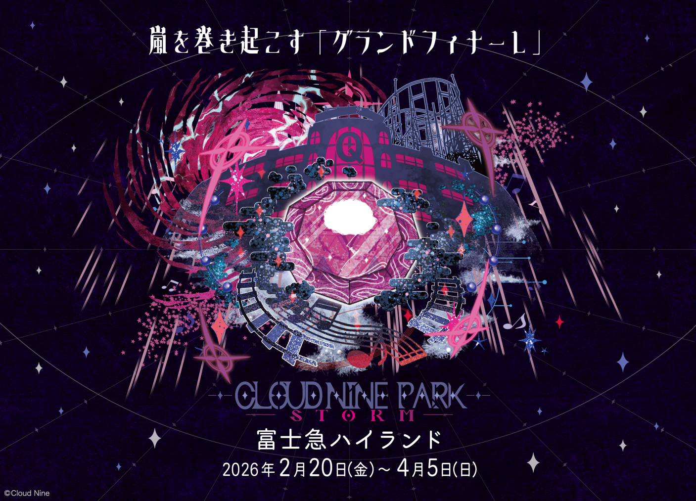 本日、入園無料の富士急ハイランド(山梨県富士吉田市)にて、Ado・shallm・ファントムシータ・平手友梨奈などアーティストやクリエイターを多くマネジメントする音楽・芸能事務所である株式会社クラウドナイン(以下「クラウドナイン」)とのコラボイベント「CLOUD NINE PARK -STORM-(クラウドナインパーク -ストーム-)」がスタートいたしました。イベントは2026年2月20日(金)から4月5日(日)まで開催されます。